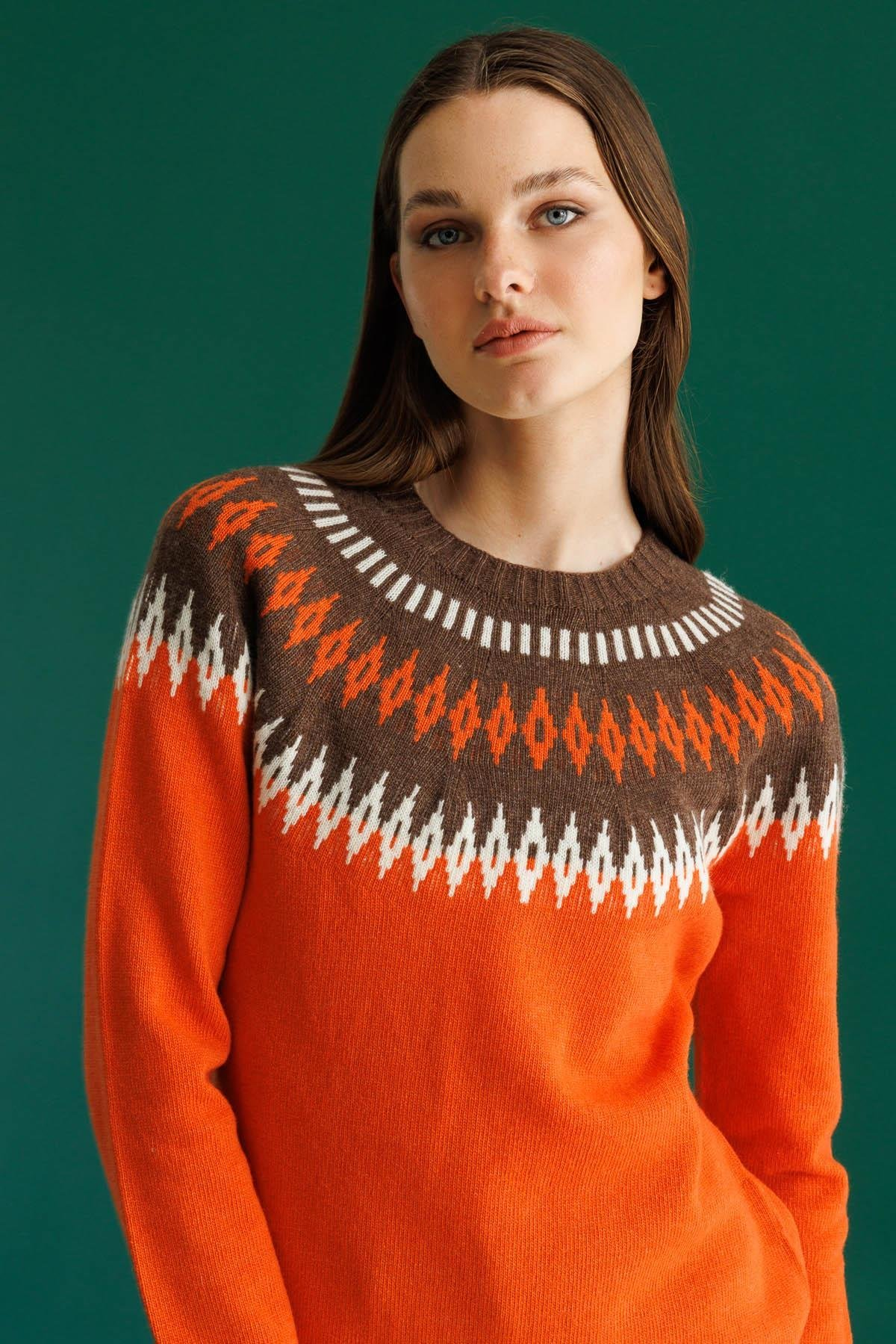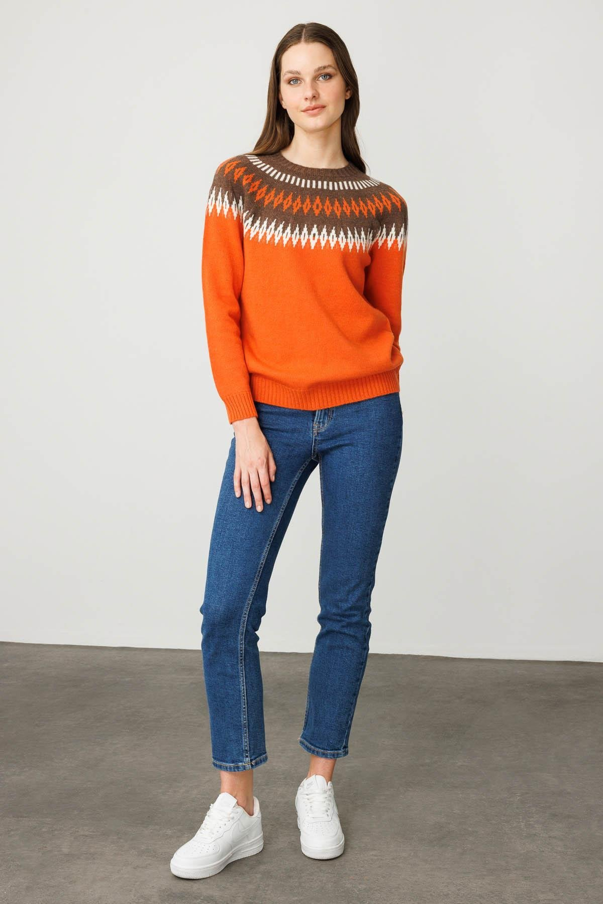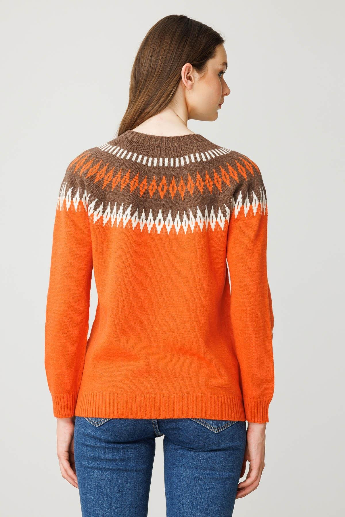 Kadın Sıfır Yaka Robası Baklavalı Yün Kazak Desen