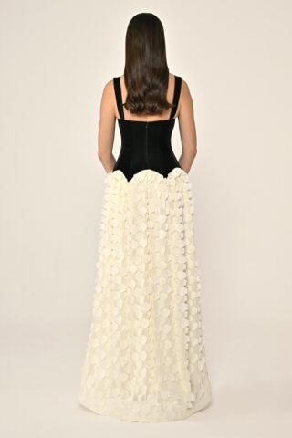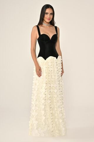 Kalp Göğüs Üst Lateks Kumaş Eteği 3 Boyut Tül Uzun Abiye Elbise Alfa Beta