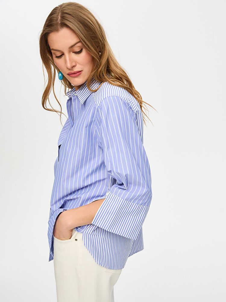 Kolları Büzgü Detaylı Çizgili Poplin Gömlek Faik Sönmez