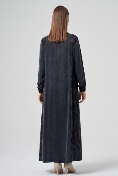 Desenli ipek cupra kumaş ile kombinlenmiştir.