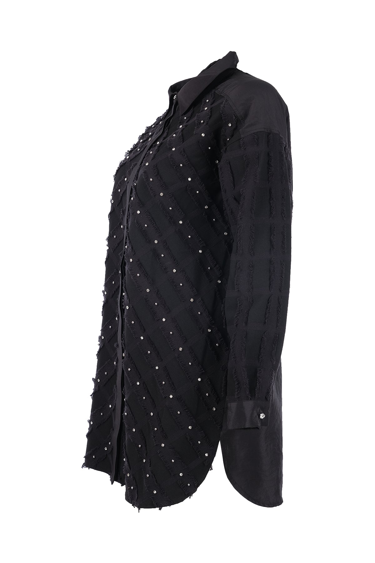 ÜRÜN AÇIKLAMASI:ithal dokuma kumaş Yapıştırma taş dizayn Gizli düğme kapamalı şık gömlek Tam kalıp Gömlek boyu 85 cm