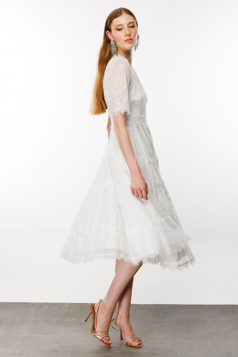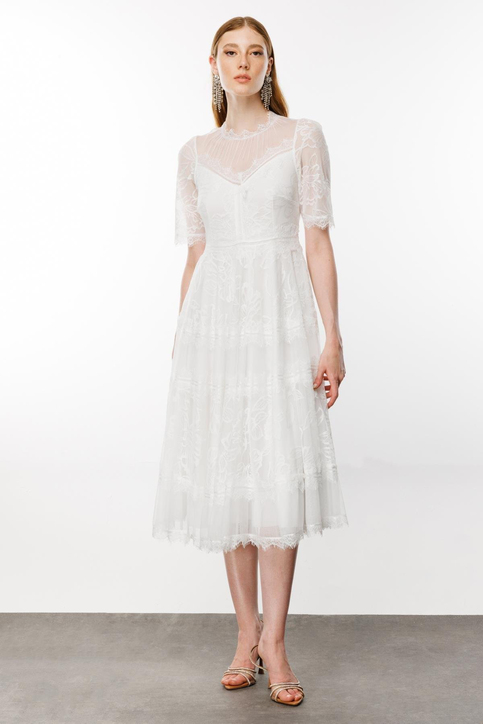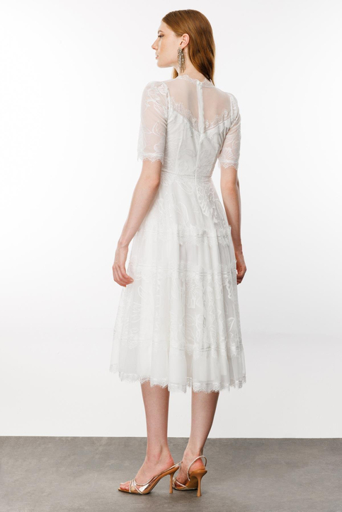 Ürün el işçilikli komple tül danteldir.İçindeki astarı sayesinde vücud hatlarını belli etmez.