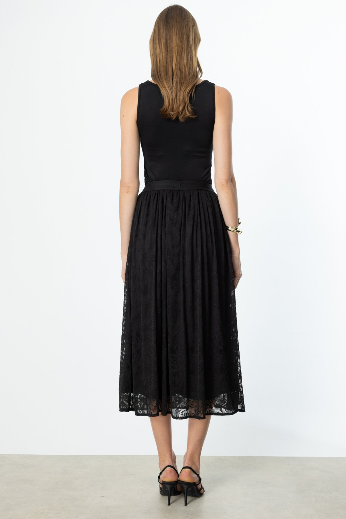 On Beli Lastikli Desenli Tül Etek