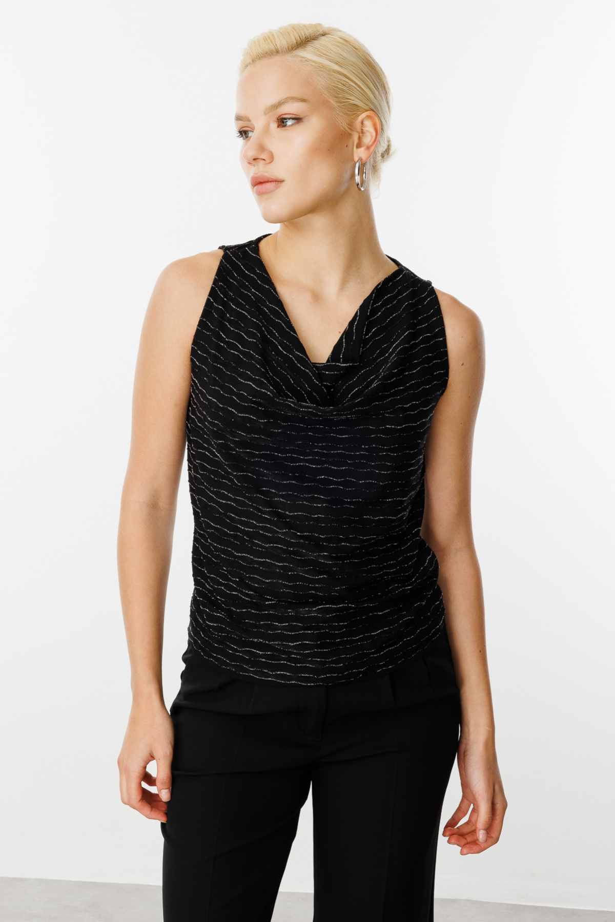 Ürün Özellikleri:Degaje yaka, kolsuz, simli, astarsızÜrün Kalıbı: Tam KalıpÜrün Kalınlığı: İnceÜrün Boyu: 60 cmKumaş İçeriği: %95 polyester...