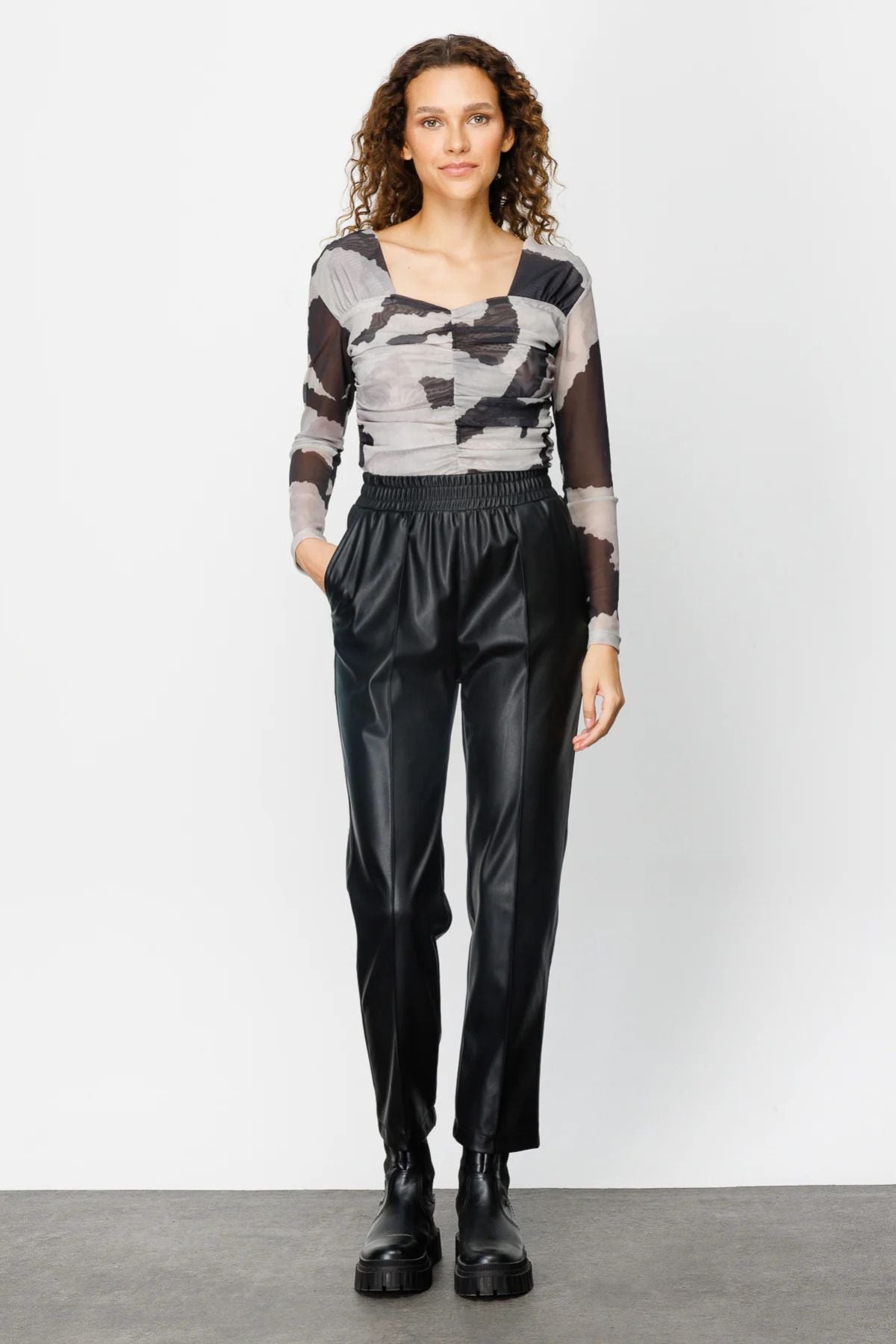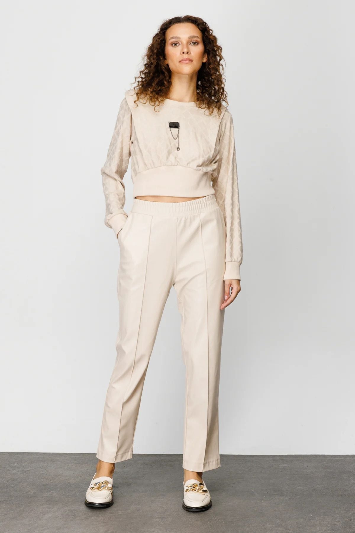 Ürün Özellikleri:; Beli lastikli; Yandan cepli; Suni deri kumaş; Önü çima dikişli; Boru paça; Yüksek bel; Likralı;...