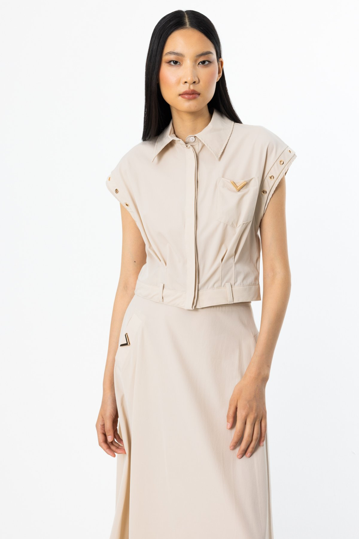 On Minimalist Crop Gömlek - Kısa Kol Gömlek Yaka Günlük