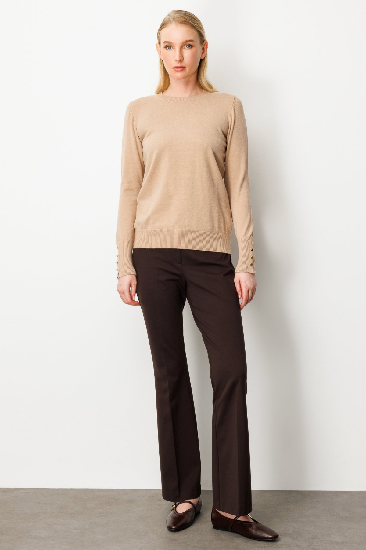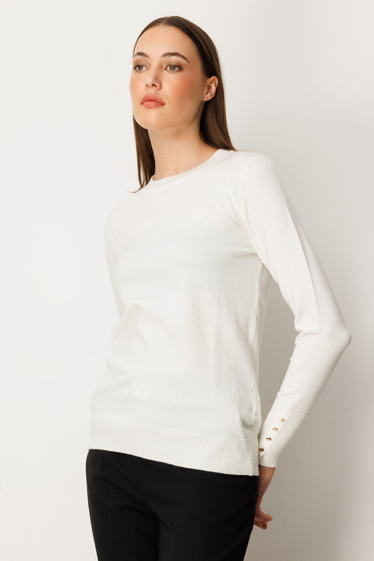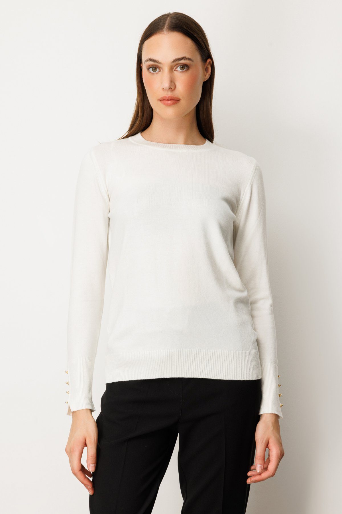 On Minimalist Kadın Uzun Kol Yuvarlak Yaka Kazak - Günlük & Ofis