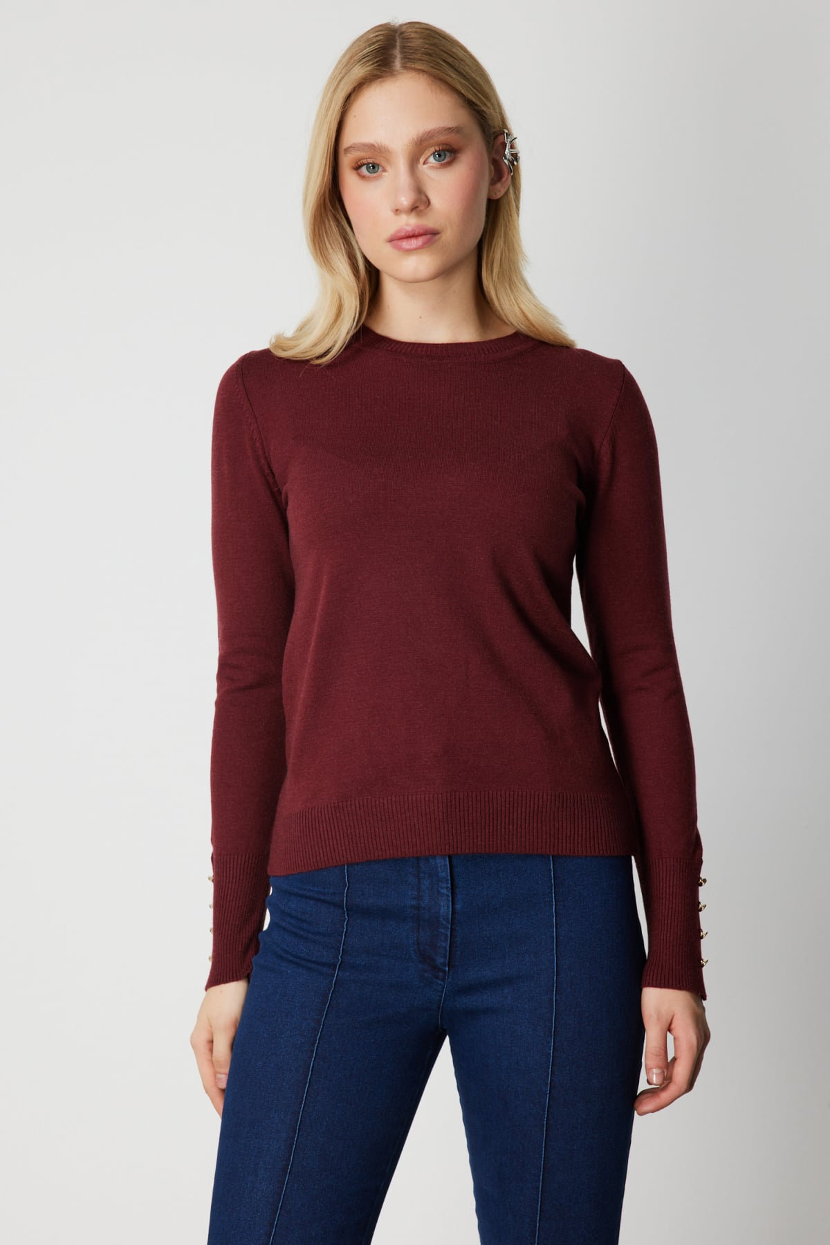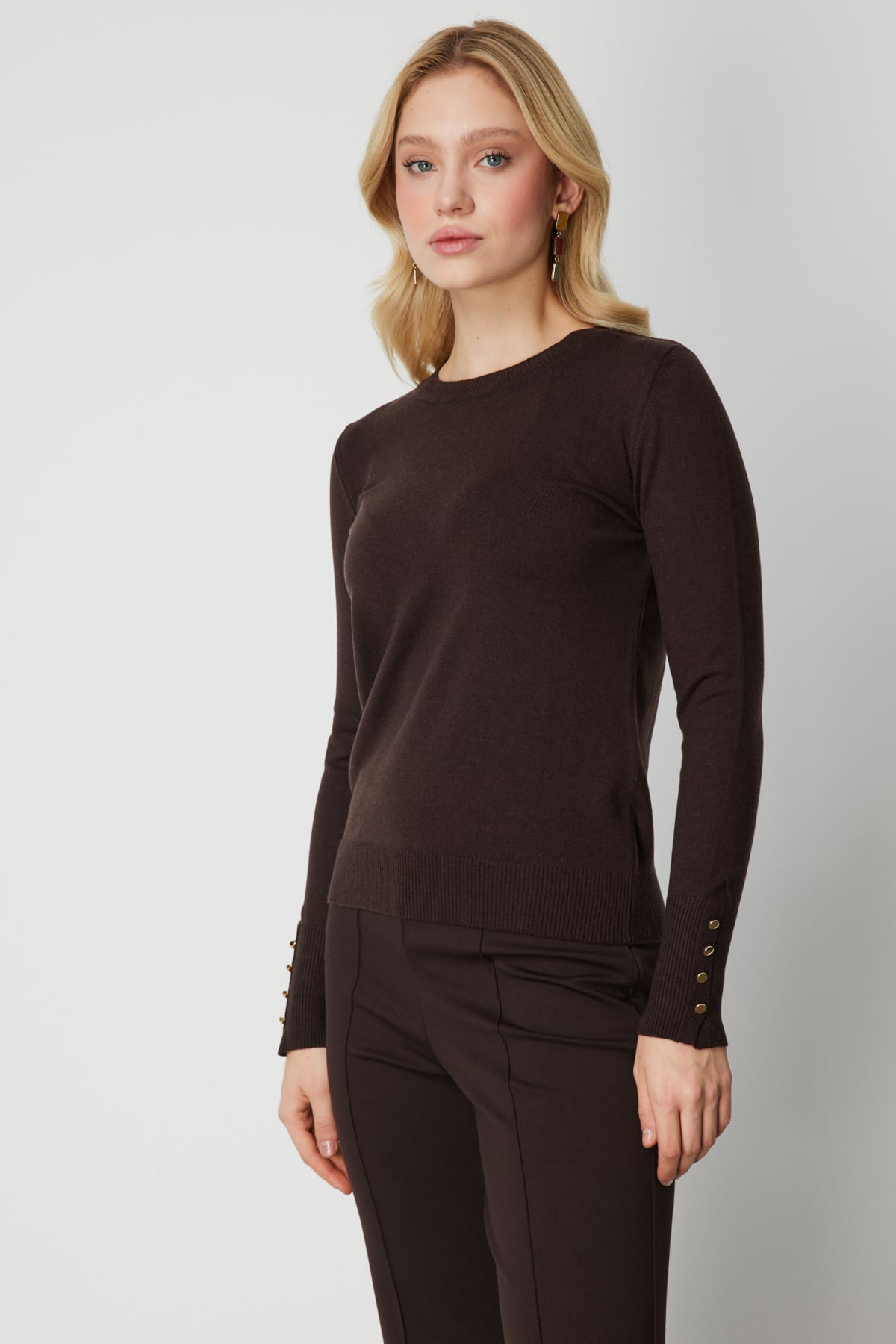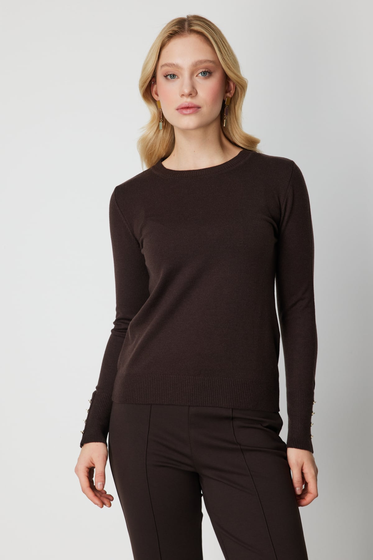 On Minimalist Kadın Uzun Kol Yuvarlak Yaka Kazak - Günlük & Ofis