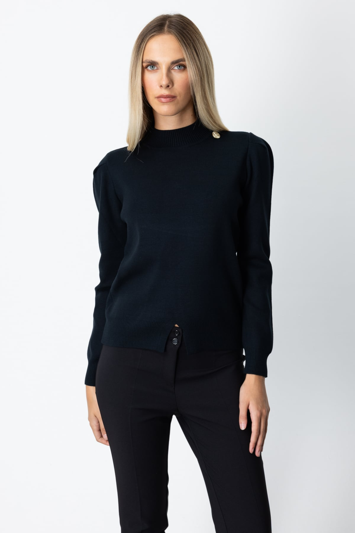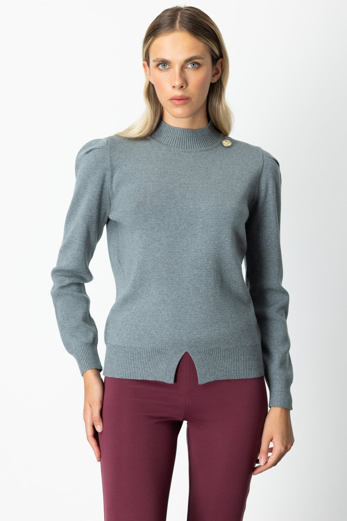 On Minimalist Uzun Kol Yüksek Yaka Kadın Kazak - Crop Kesim
