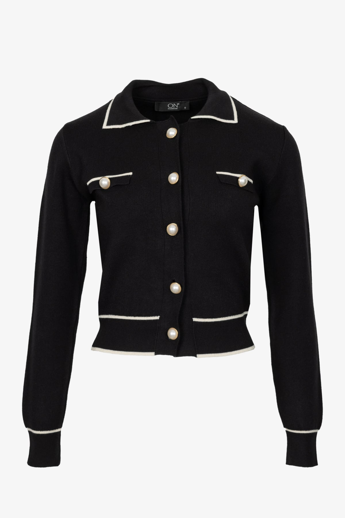 On Şerit Detaylı Düğmeli Hırka