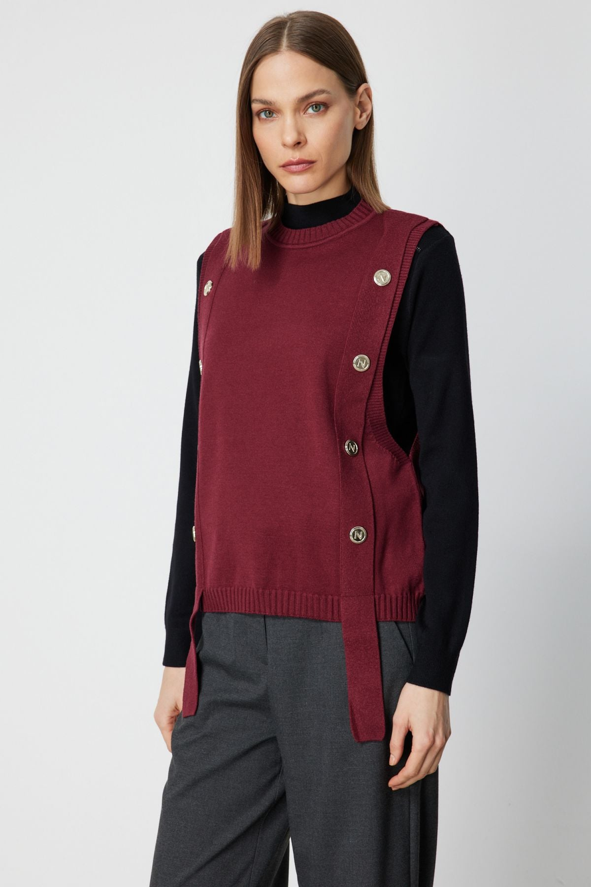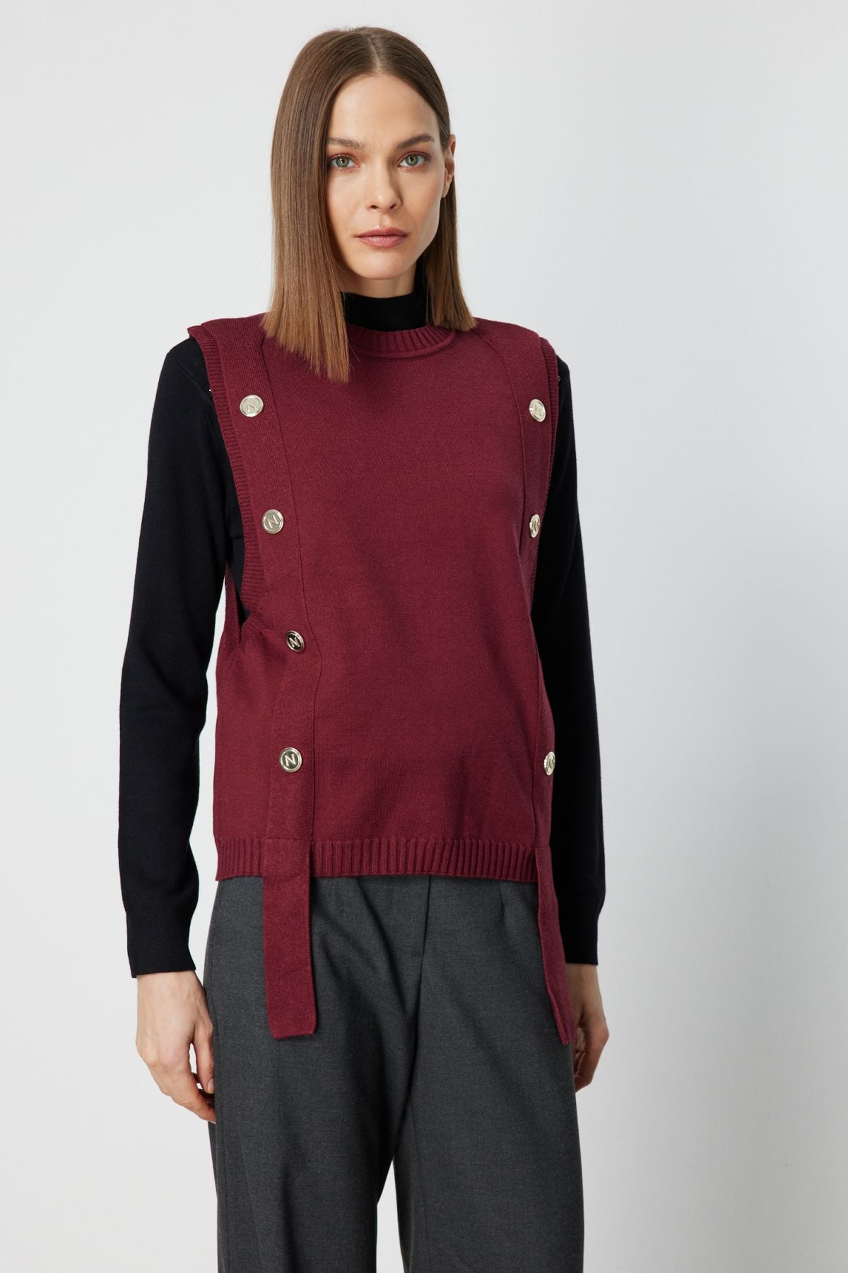 On Süs Düğmeli Sıfır Yaka Süveter