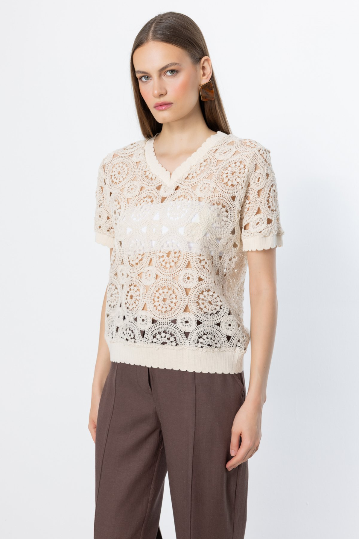 On V Yaka Örme Bluz