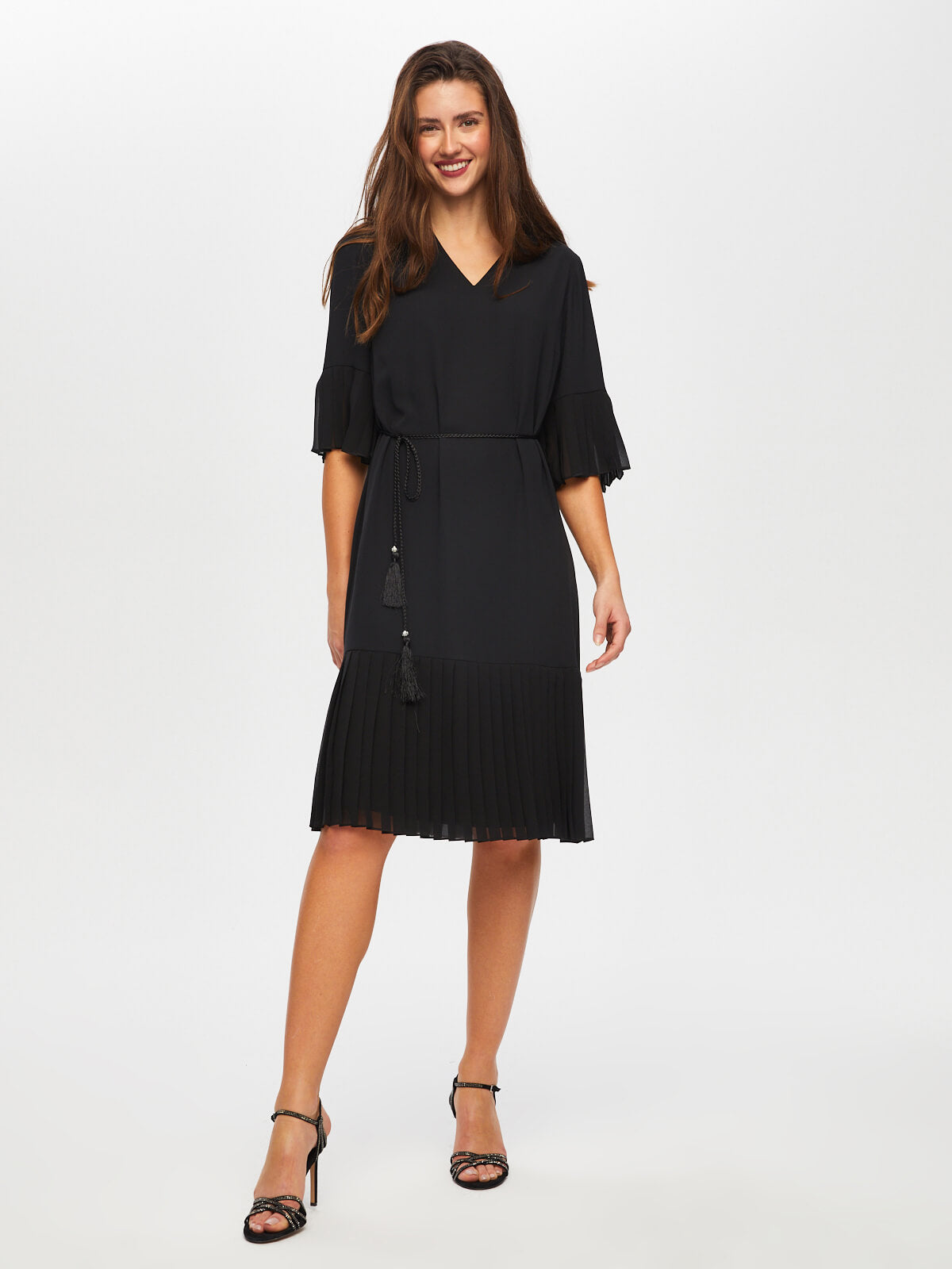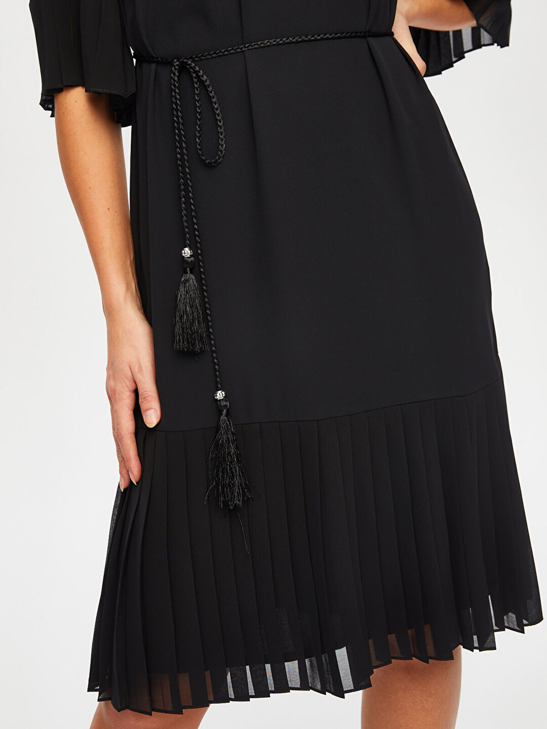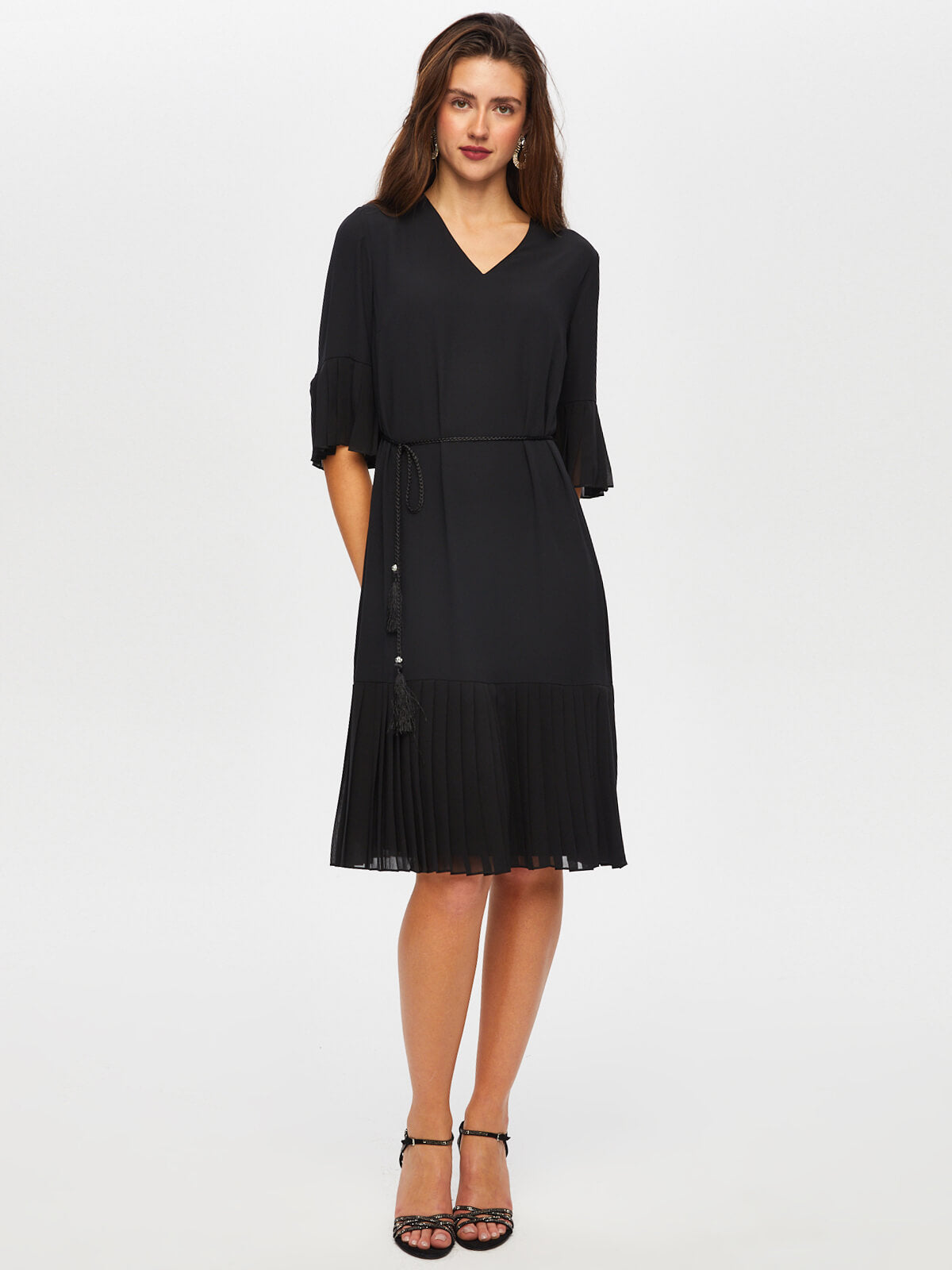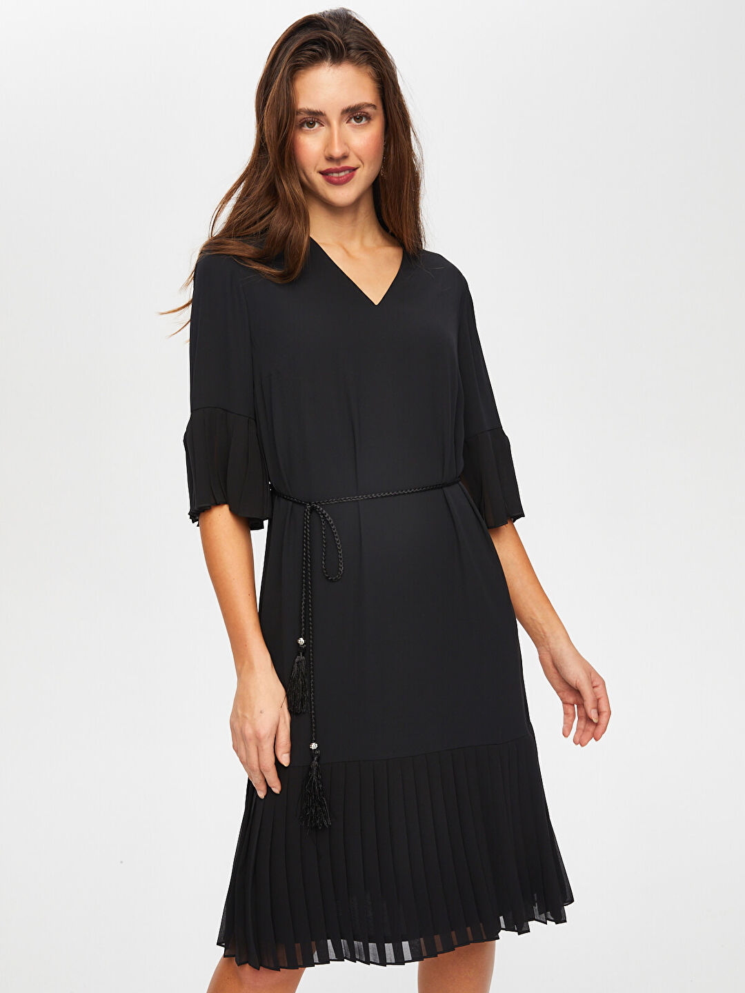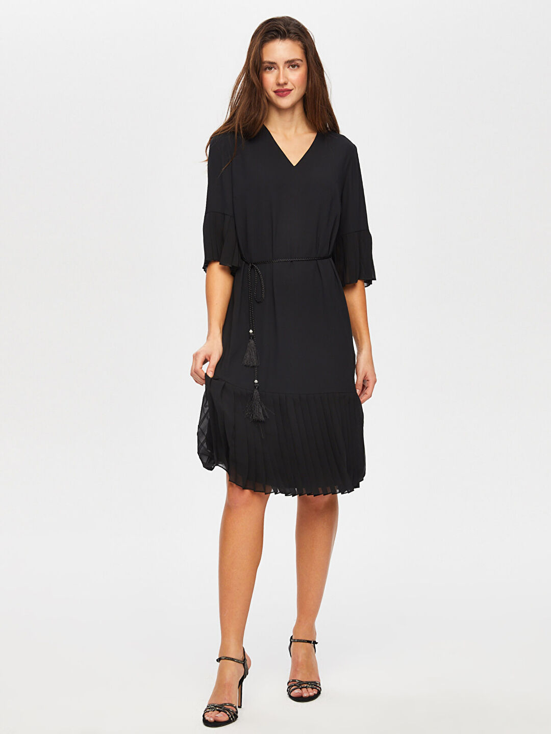 Plise Dantel Garnili V Yaka Abiye Elbise Faik Sönmez