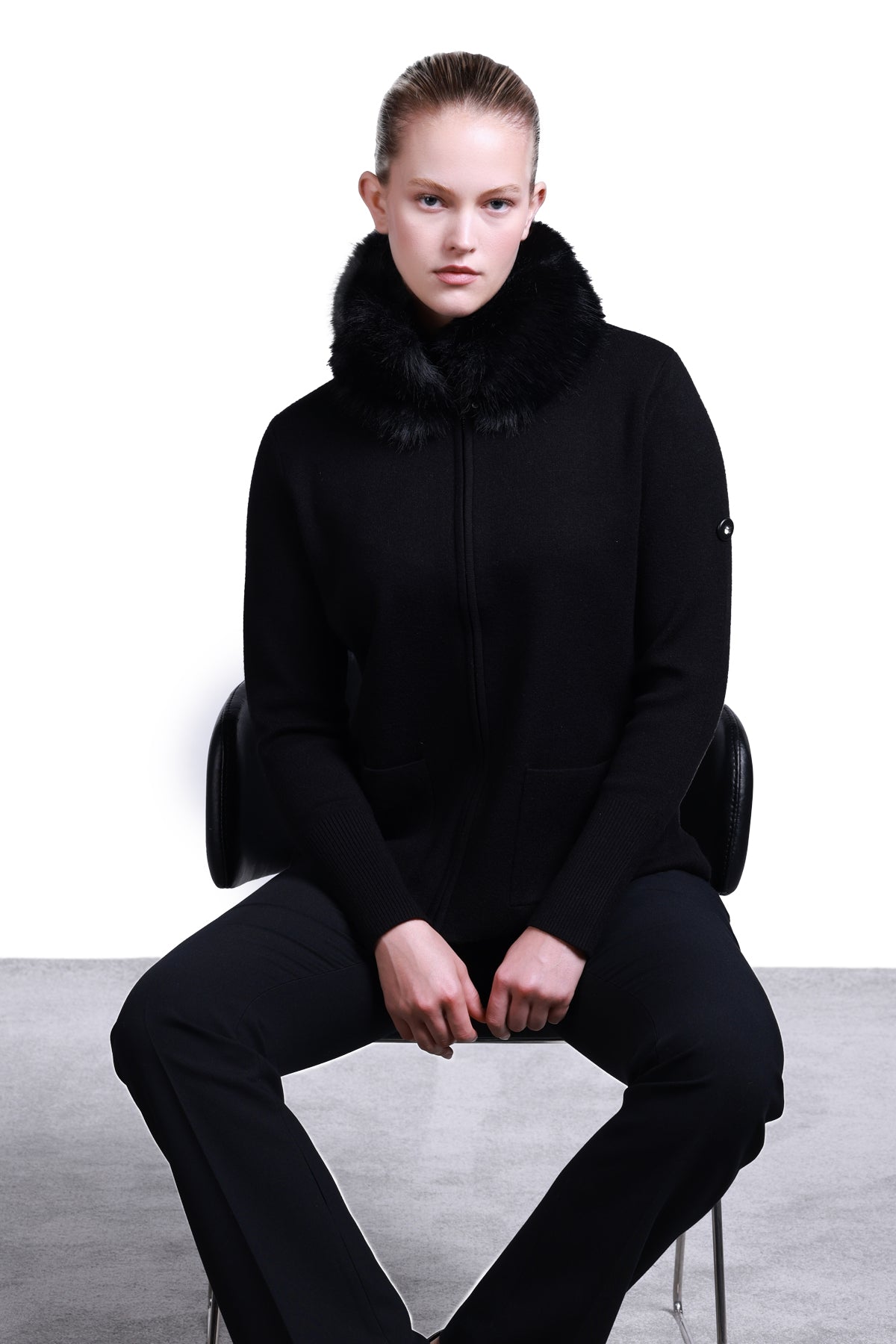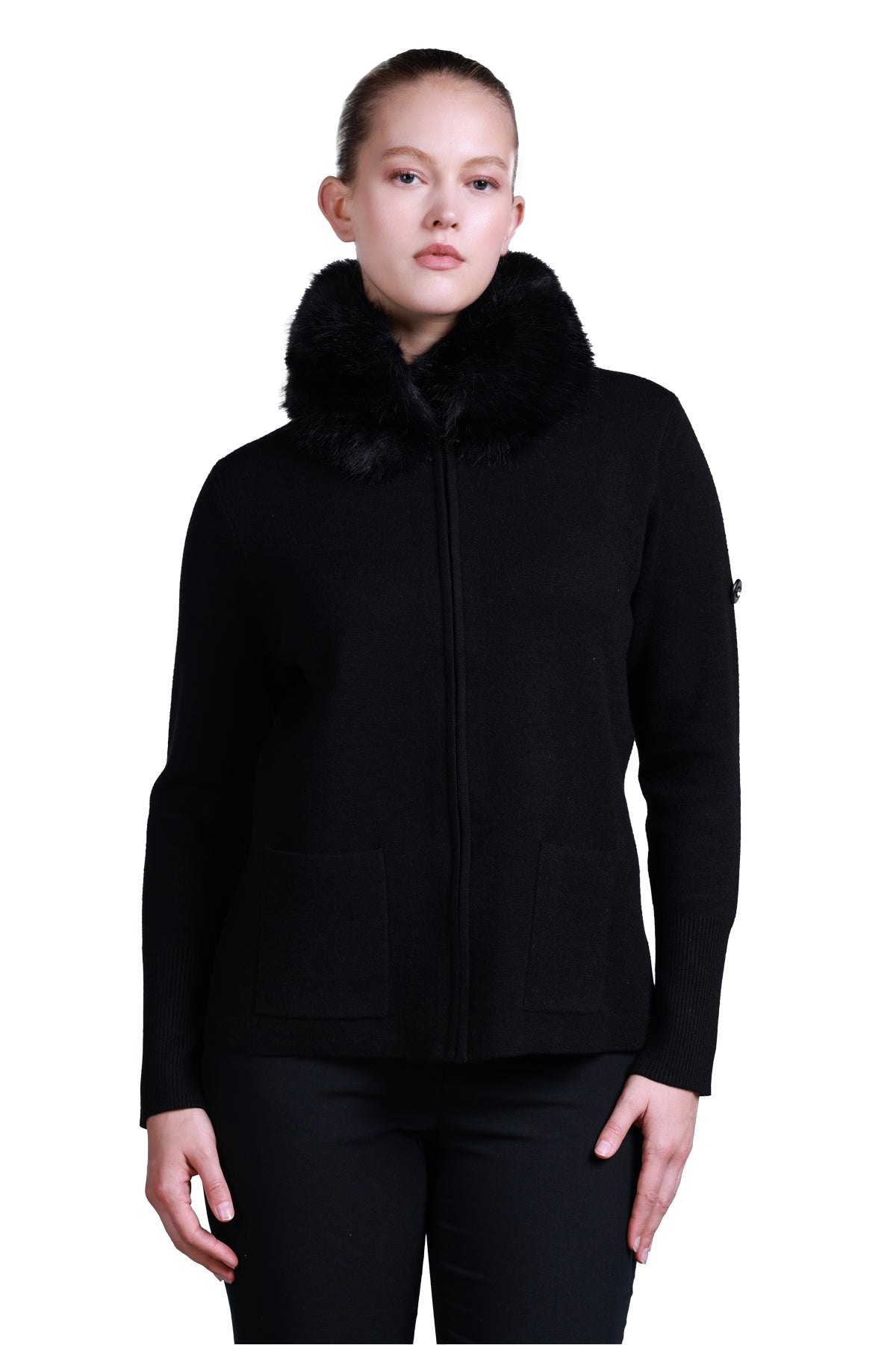 Sempre Kadın Minimalist Kürk Detaylı Fermuarlı Kazak