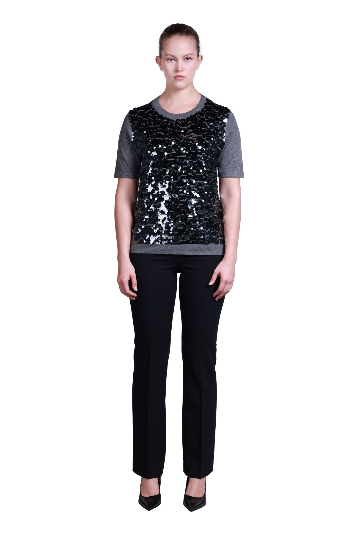 Sempre Kısa Kol Pullu Minimalist Kadın Kazak - Günlük & Parti