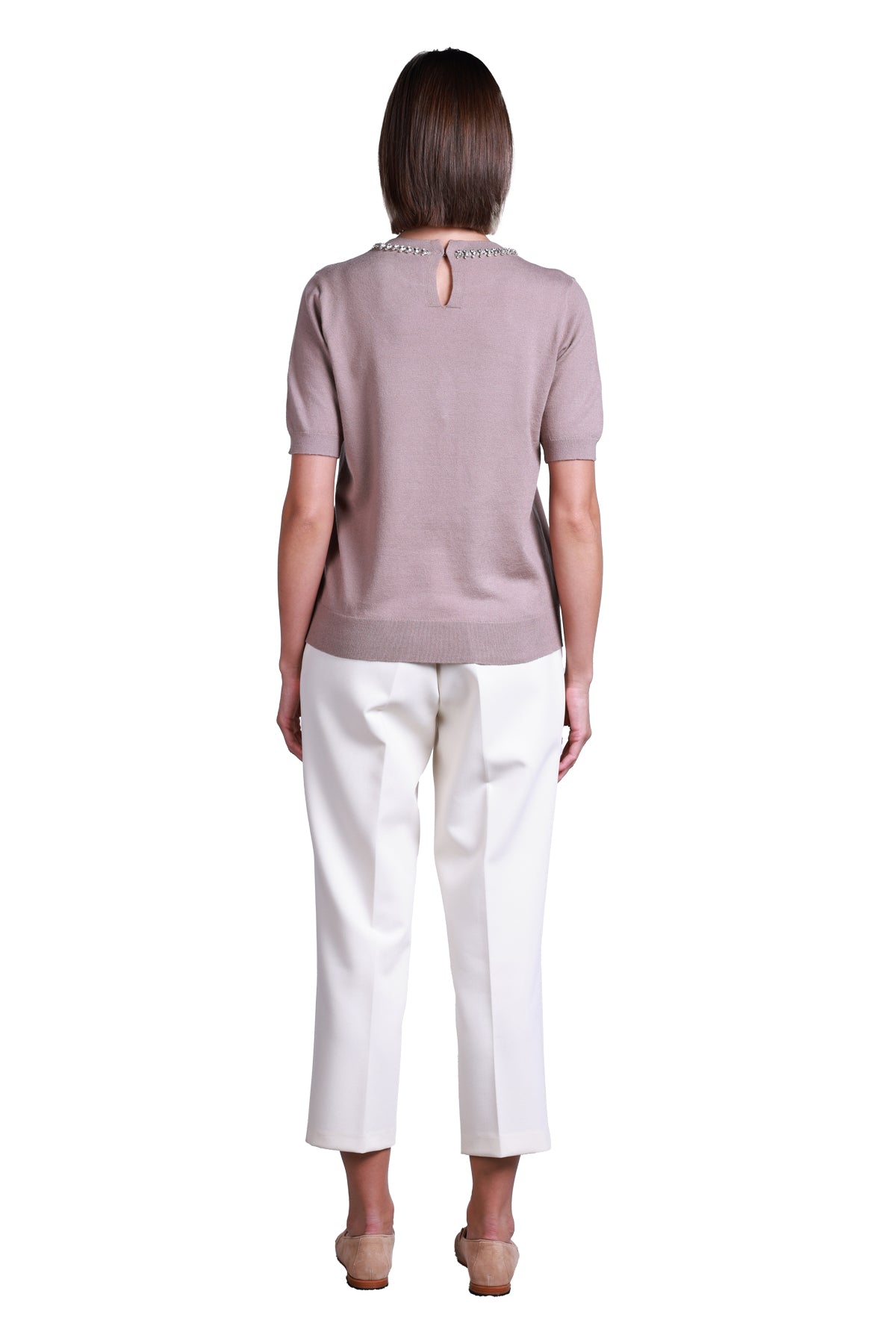 Sempre Minimalist Kadın Kazak - Kısa Kol, Taş Detaylı, Günlük