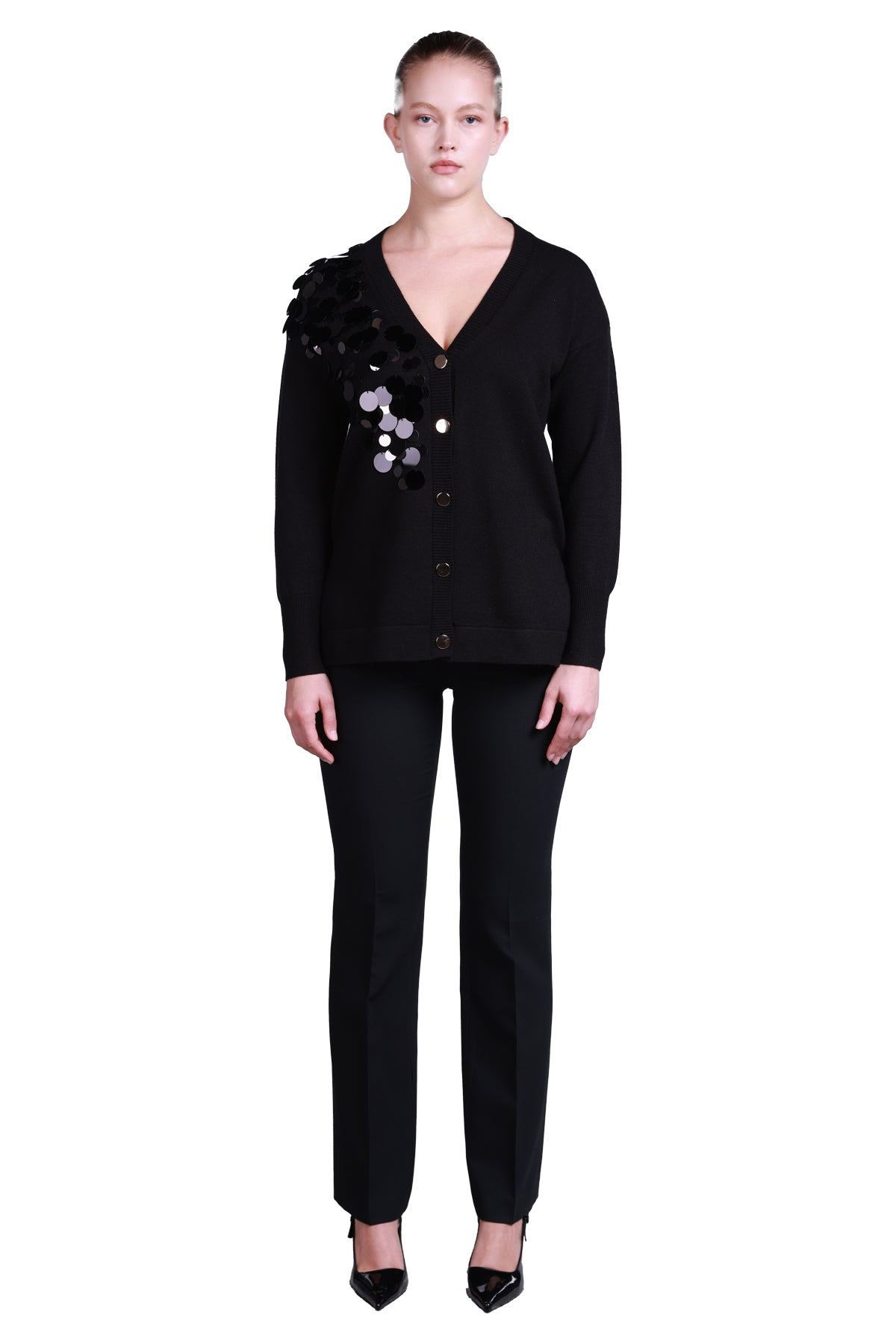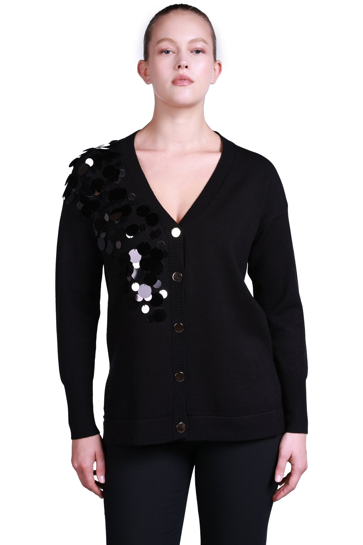 Sempre Oversize V Yaka Pullu Uzun Kol Kazak - Günlük & Şık