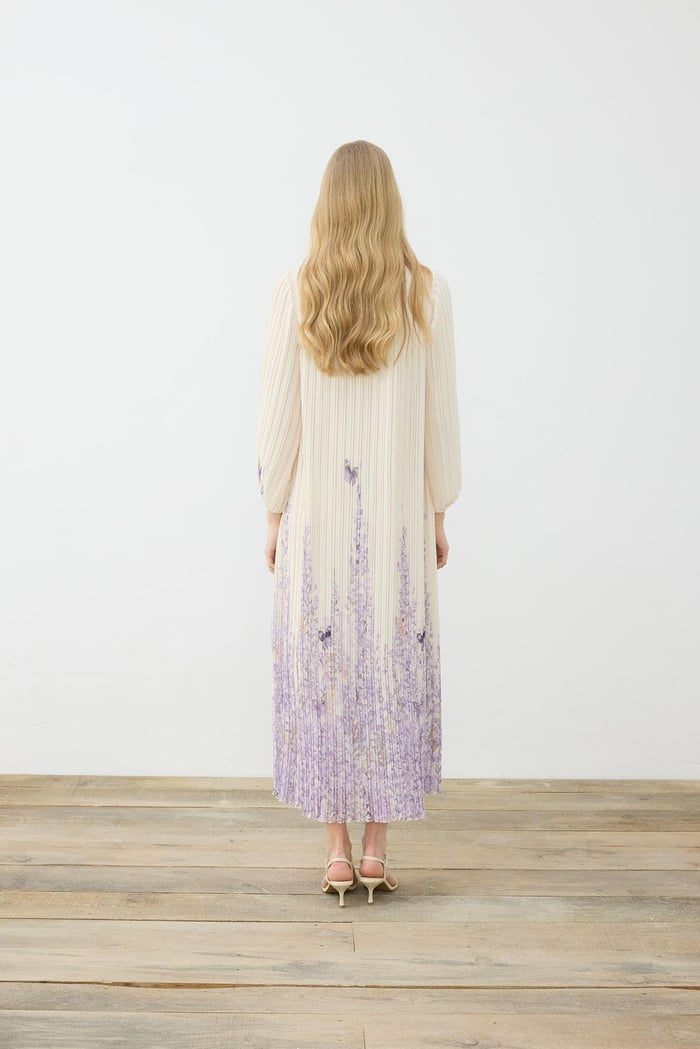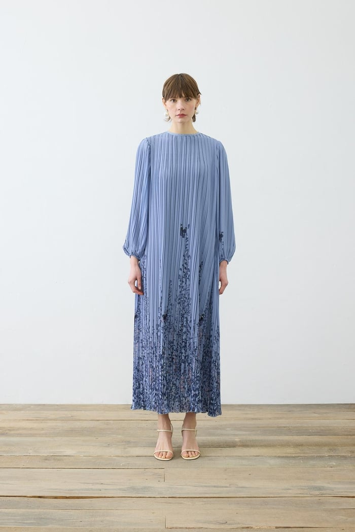 Sümbül Desen Pliseli Şifon Elbise Terzi Dükkani
