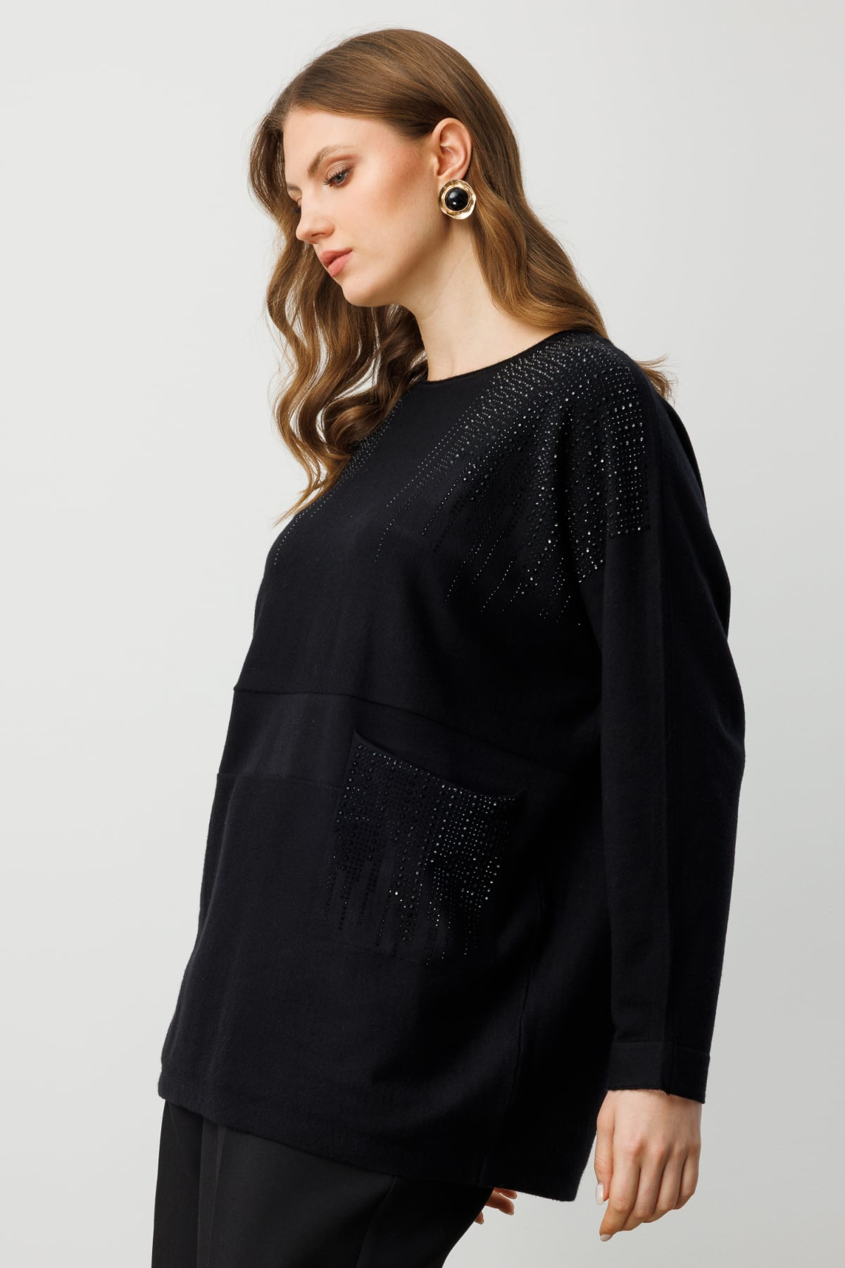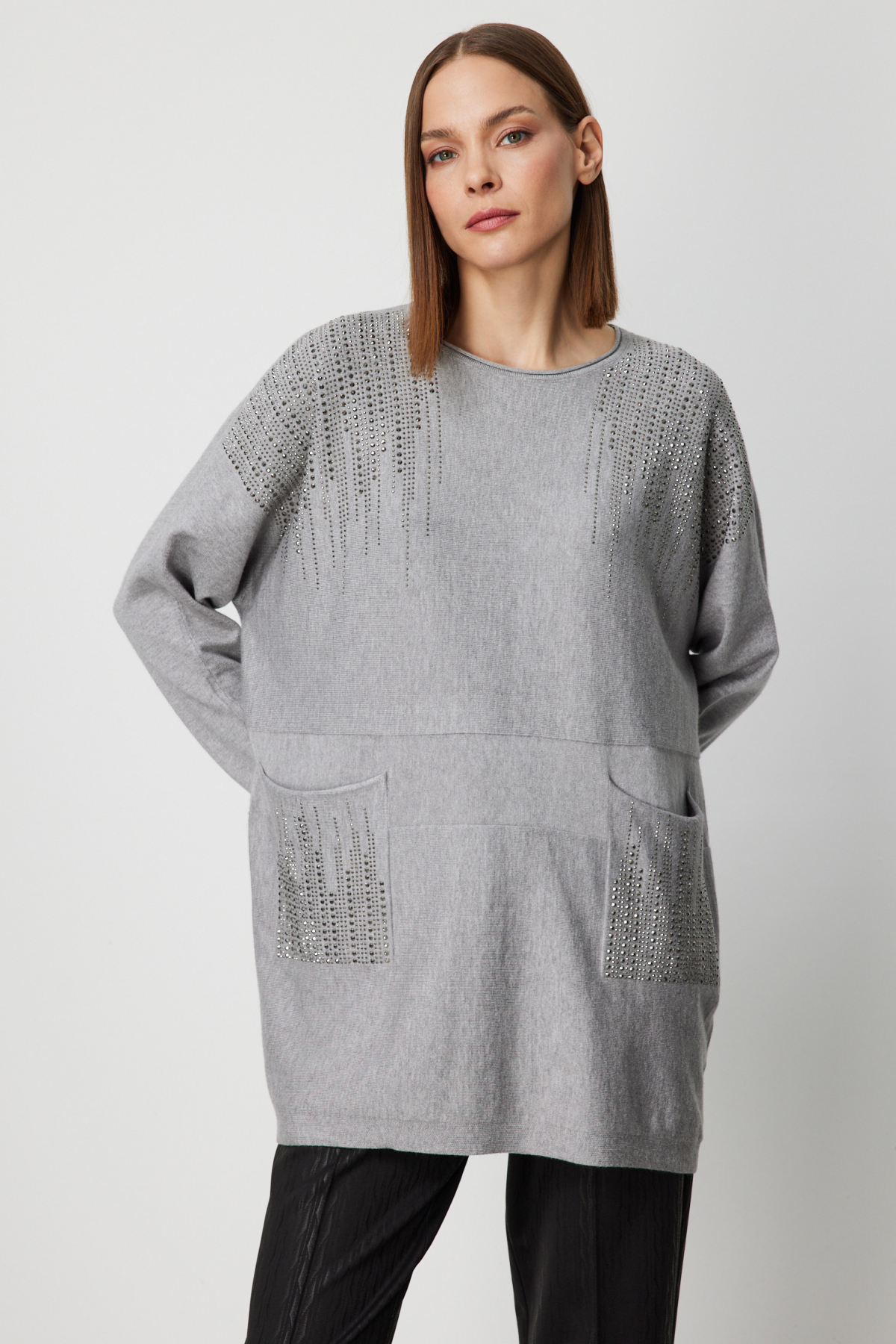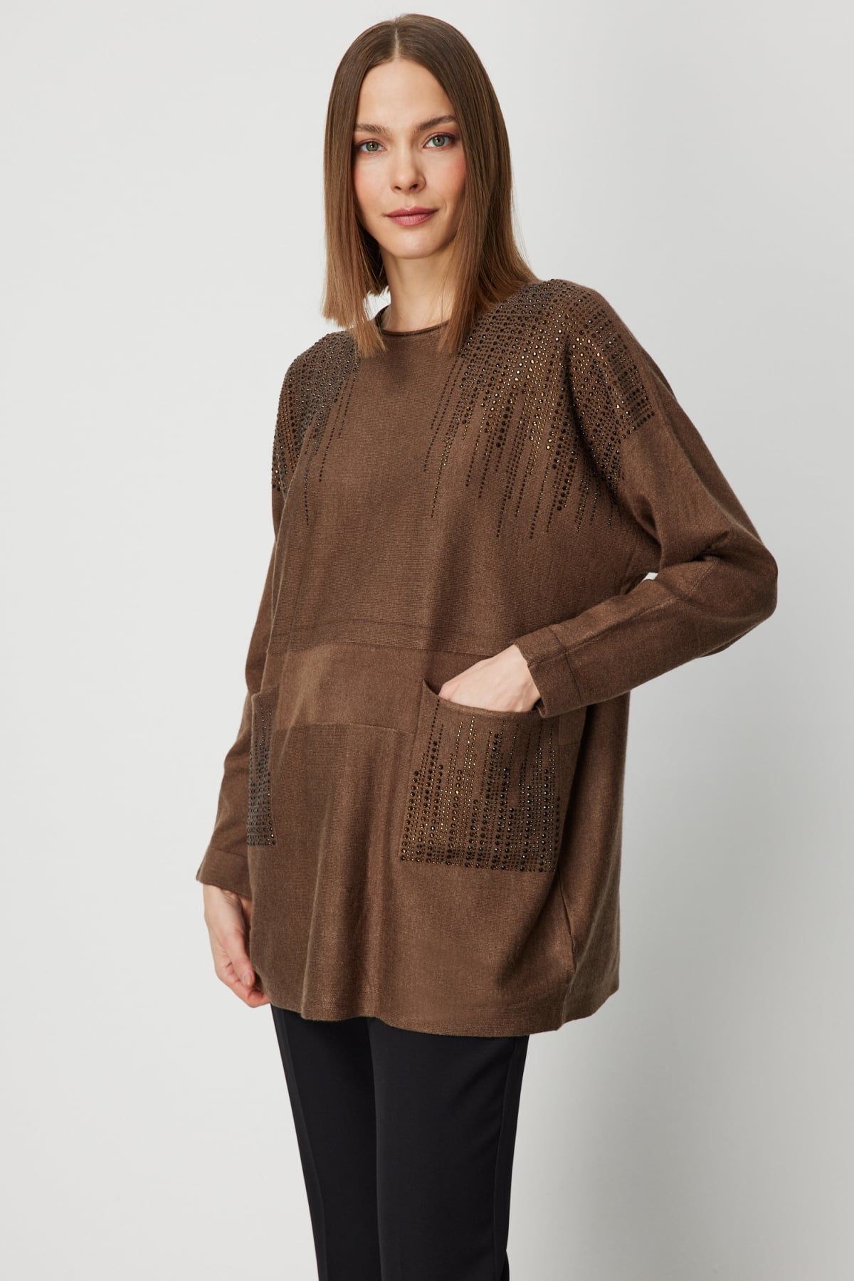 Taş İşlemeli Torba Cepli Kazak 26KON60304