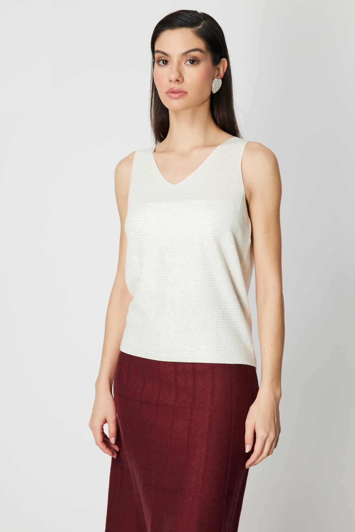 Taşlı V Yaka Triko Bluz On