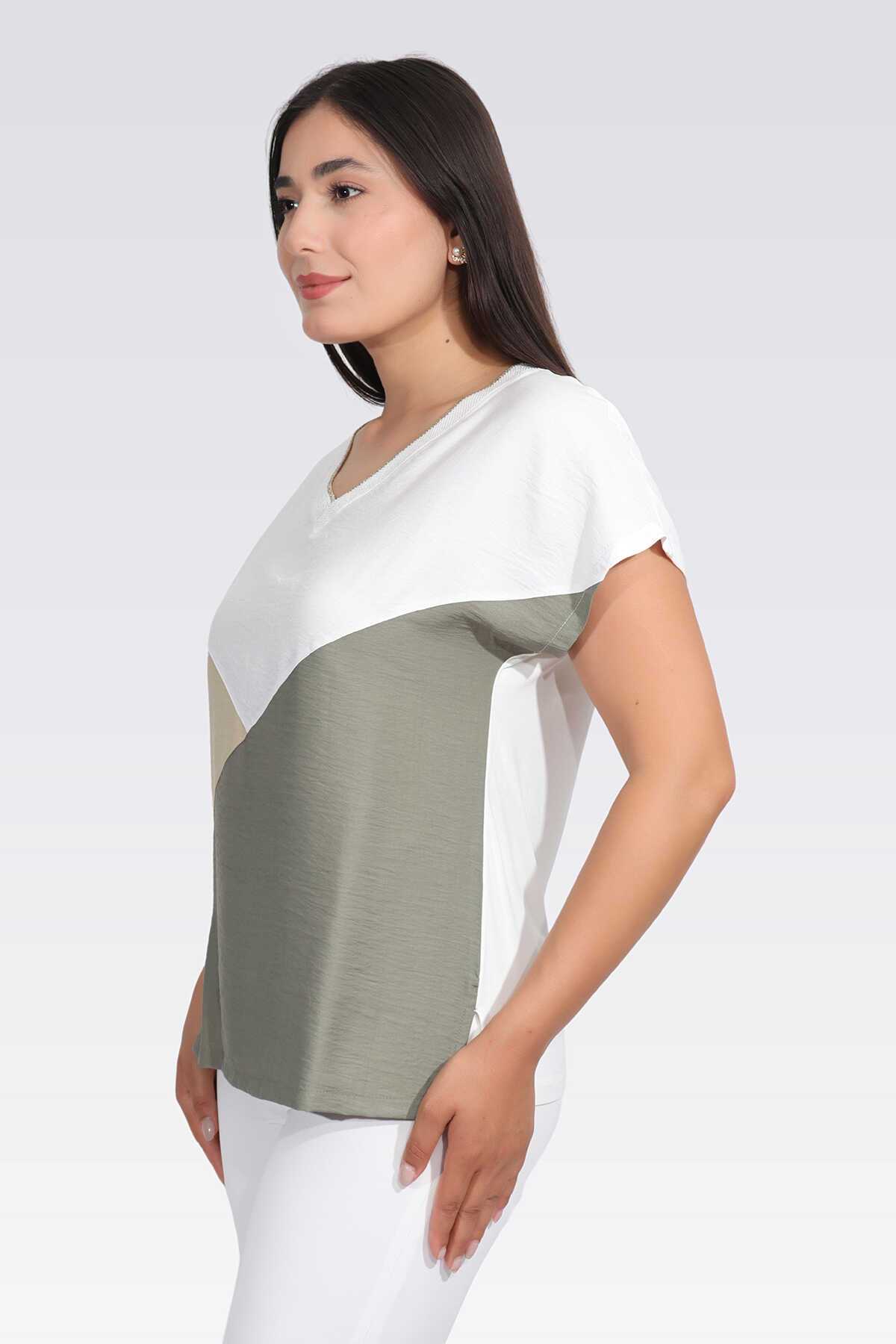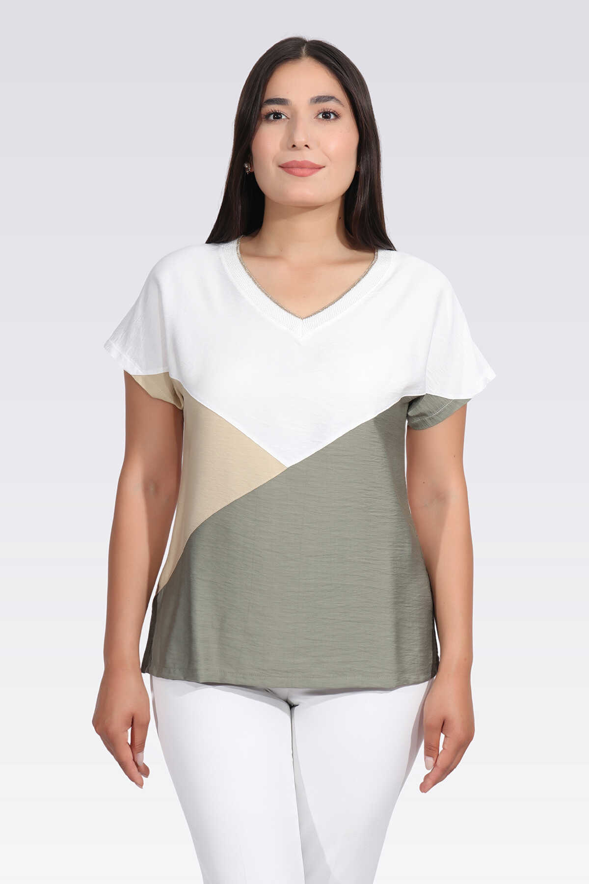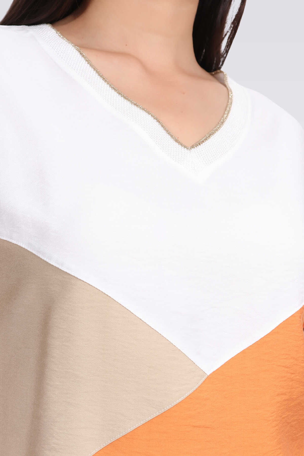 ​​​​​​​​Kumaş ve Model ÖzellikleriRenk blokluAyrobin kumaş ve örme kumaş karışımıDüşük kolNormal kesimV yakada ribana detayıKumaş İçeriğiAyrobin kumaş...