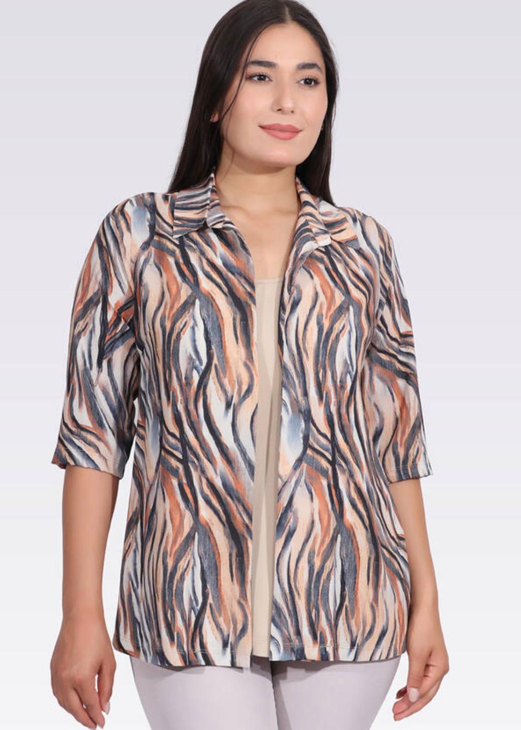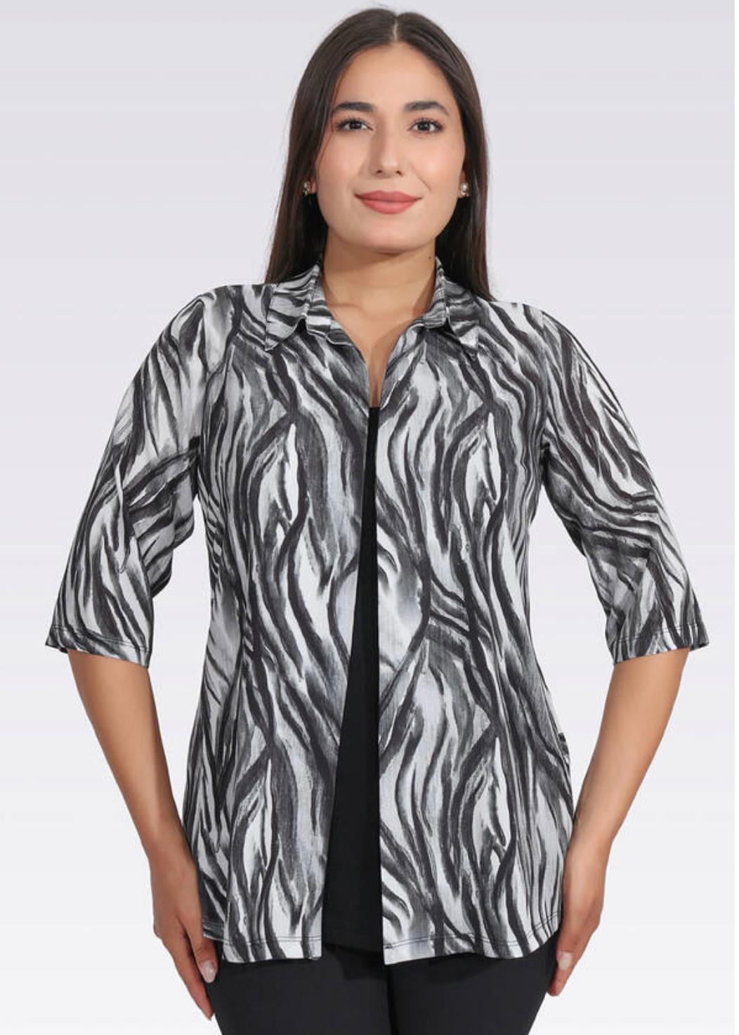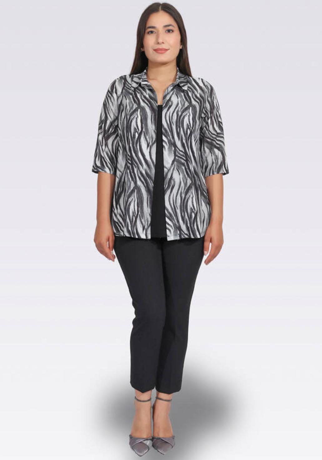 Tolga Saraçoğlu Kadın Bluz - Minimalist Zebra Desenli 3/4 Kol Oversize