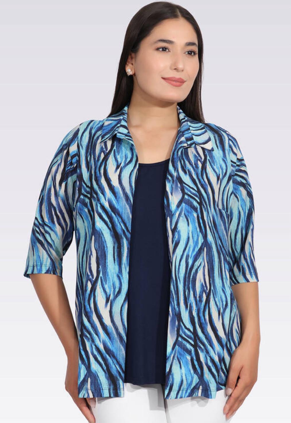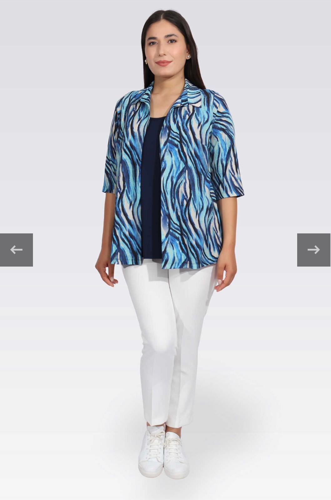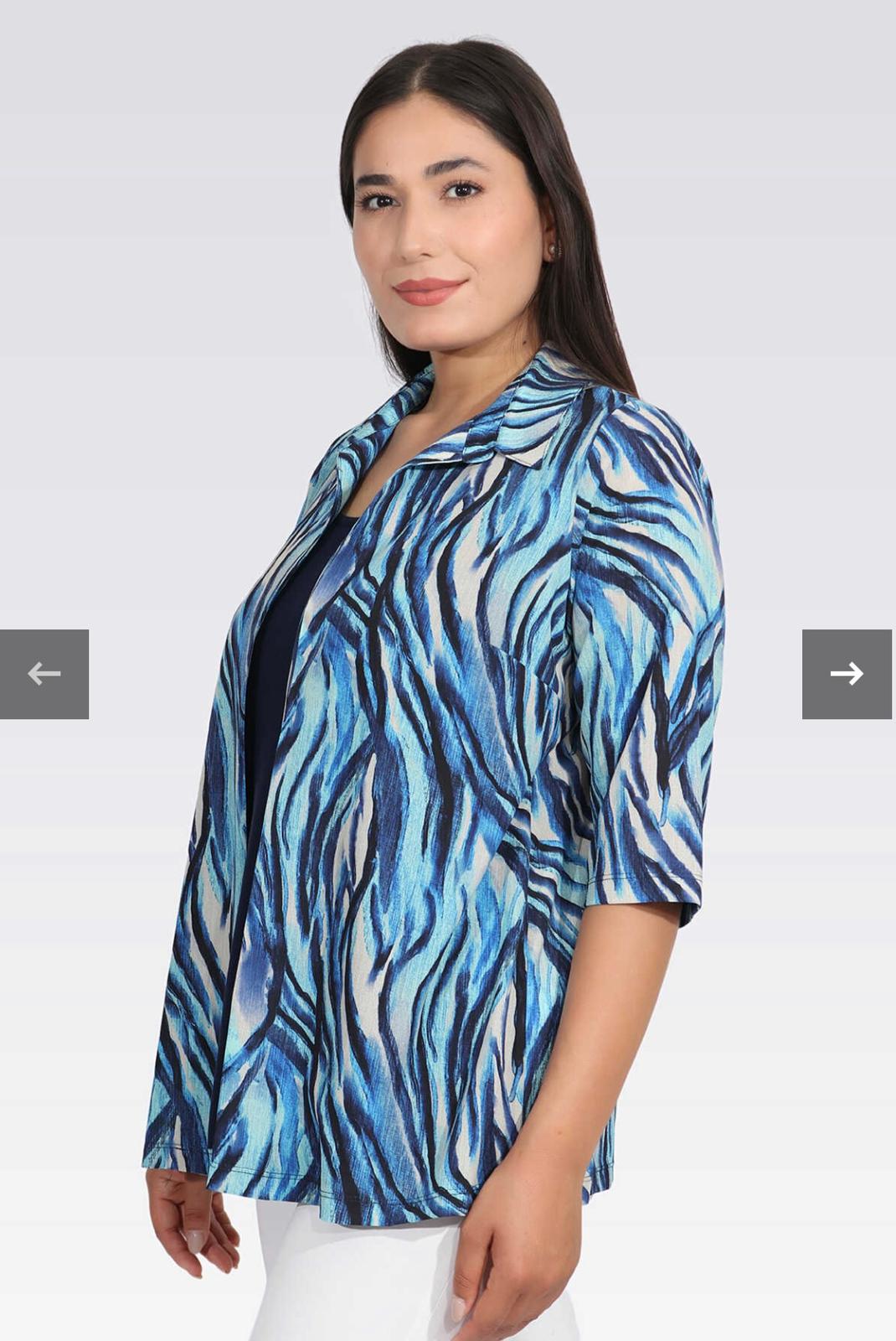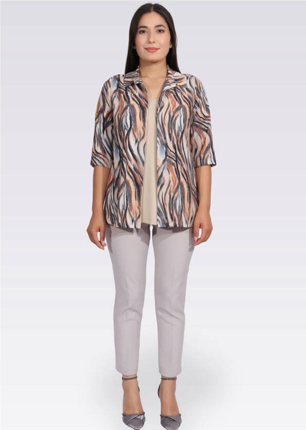 Tolga Saraçoğlu Kadın Bluz - Minimalist Zebra Desenli 3/4 Kol Oversize