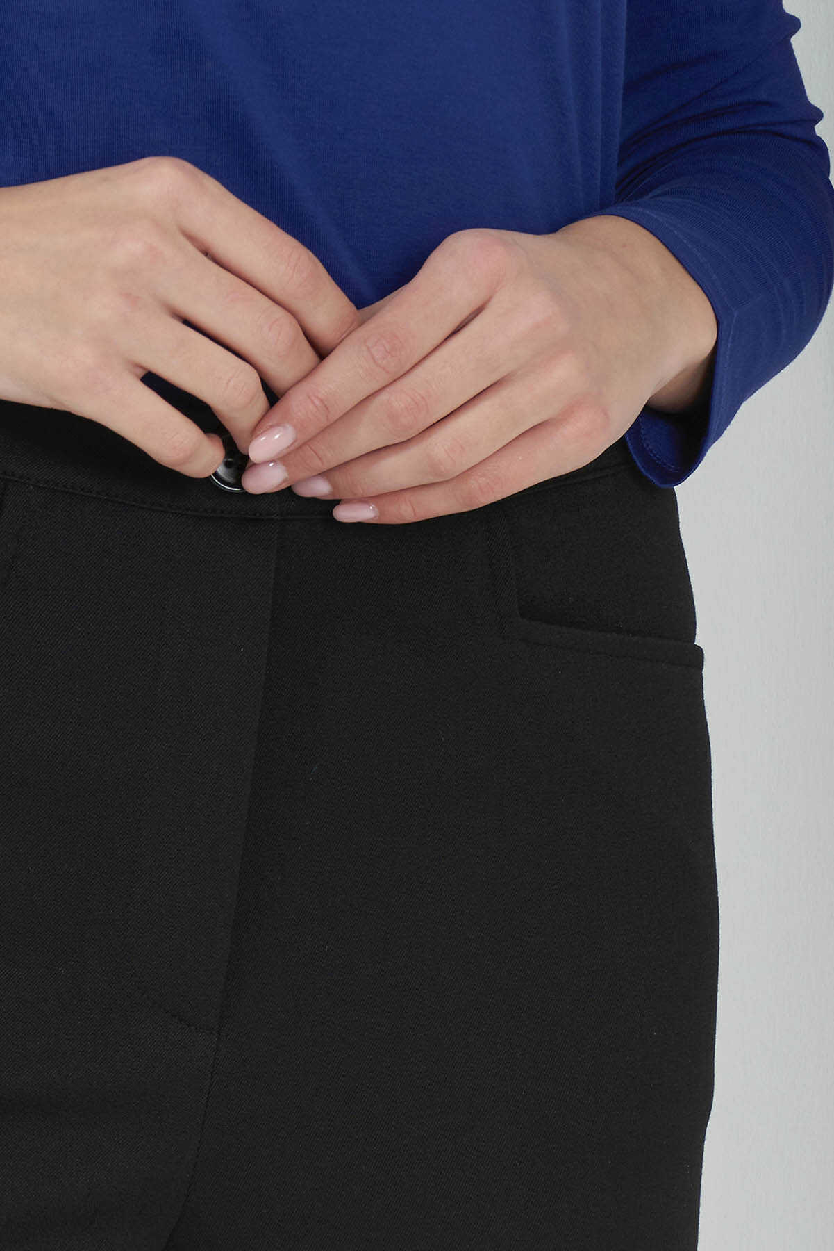 ​​​​​​​​Kumaş ve model özelliği - Gabardin dokulu likralı kumaştan üretilmiştir. Kumaş orta kalınlıktadır. Sonbahar ve kış mevsimlerinde giyime uygundur. Kumaş hem enine hem boyuna esneyebildiği için diz yapmaz. Belinde kullanılan gizli lastik sayesinde bel bedene göre esner ve konforlu bir kullanım sağlar.