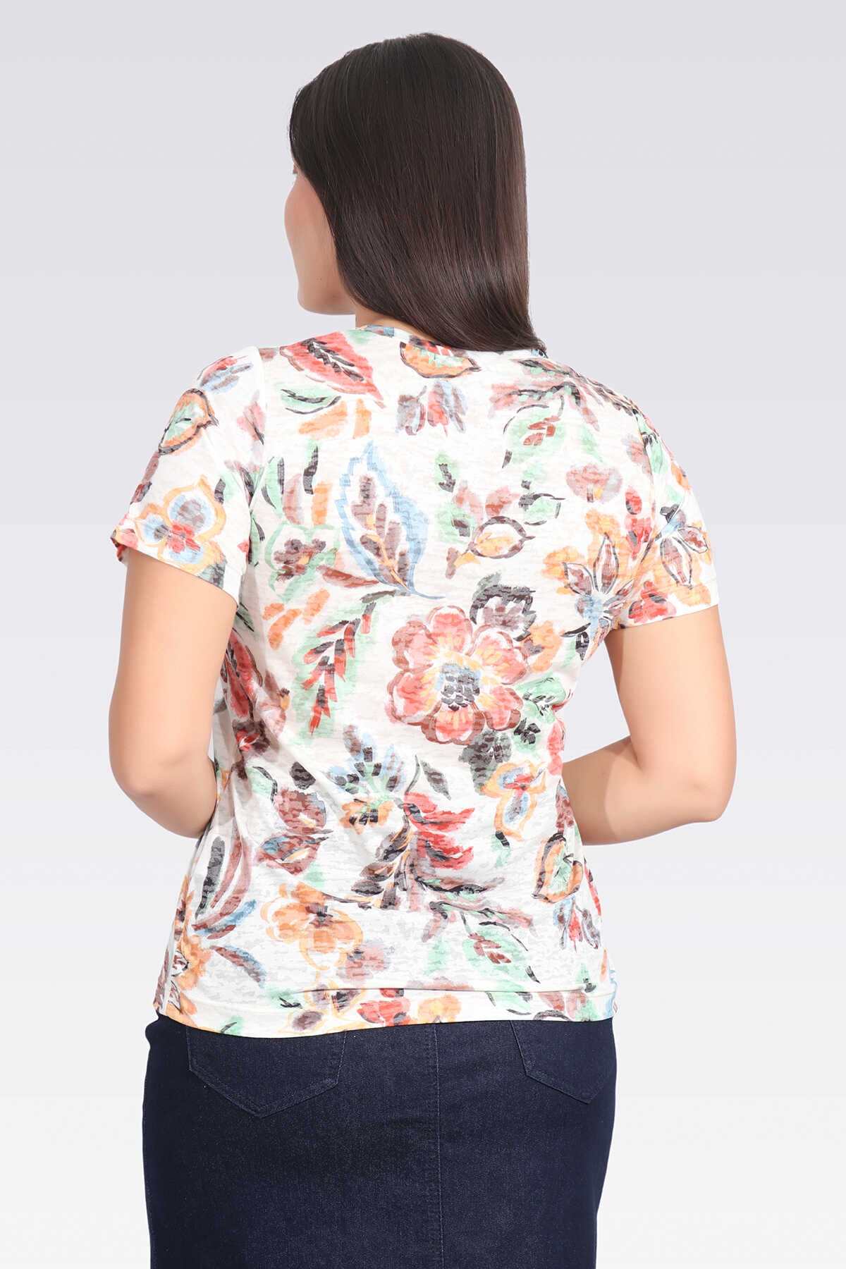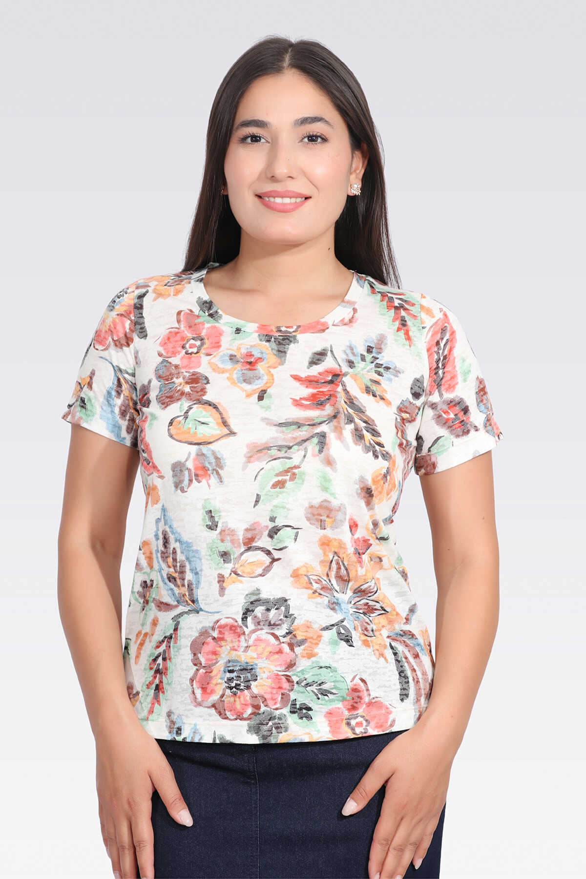 Tolga Saraçoğlu Minimalist Çiçekli Kısa Kol Kadın Bluz - Günlük