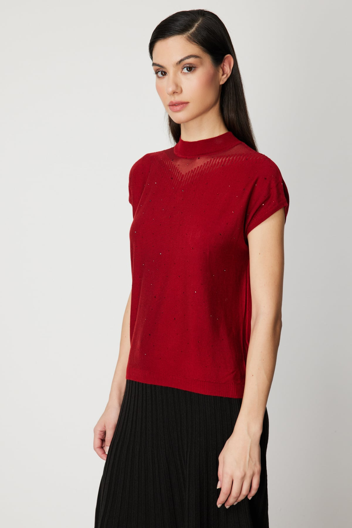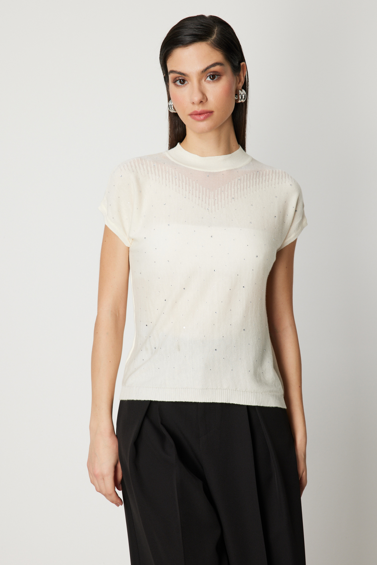 Transparan Detaylı Taşlı Bluz On