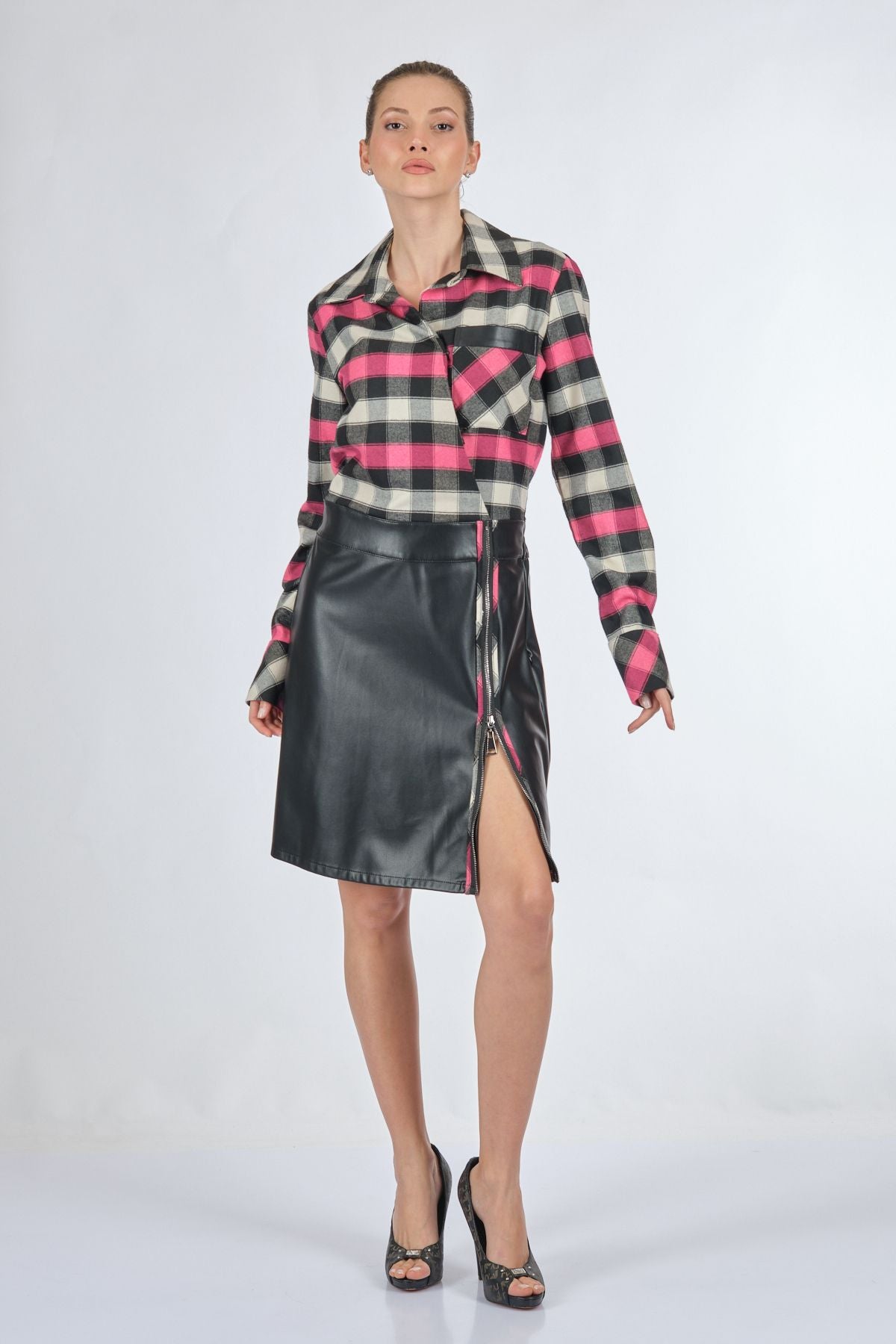 Manken Ölçüsü : Kilo : 52 kg / Boy : 1.73 cm / Göğüs : 86 cm / Bel : 65 cm / Basen : 92 cm / Beden : S; Kumaş İçeriği:%62polyester %35 viskon %3 elastan