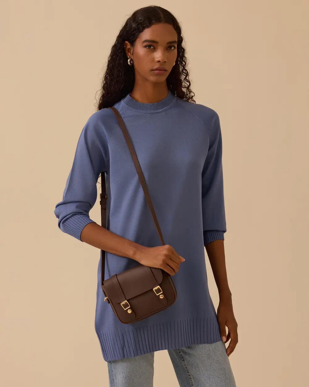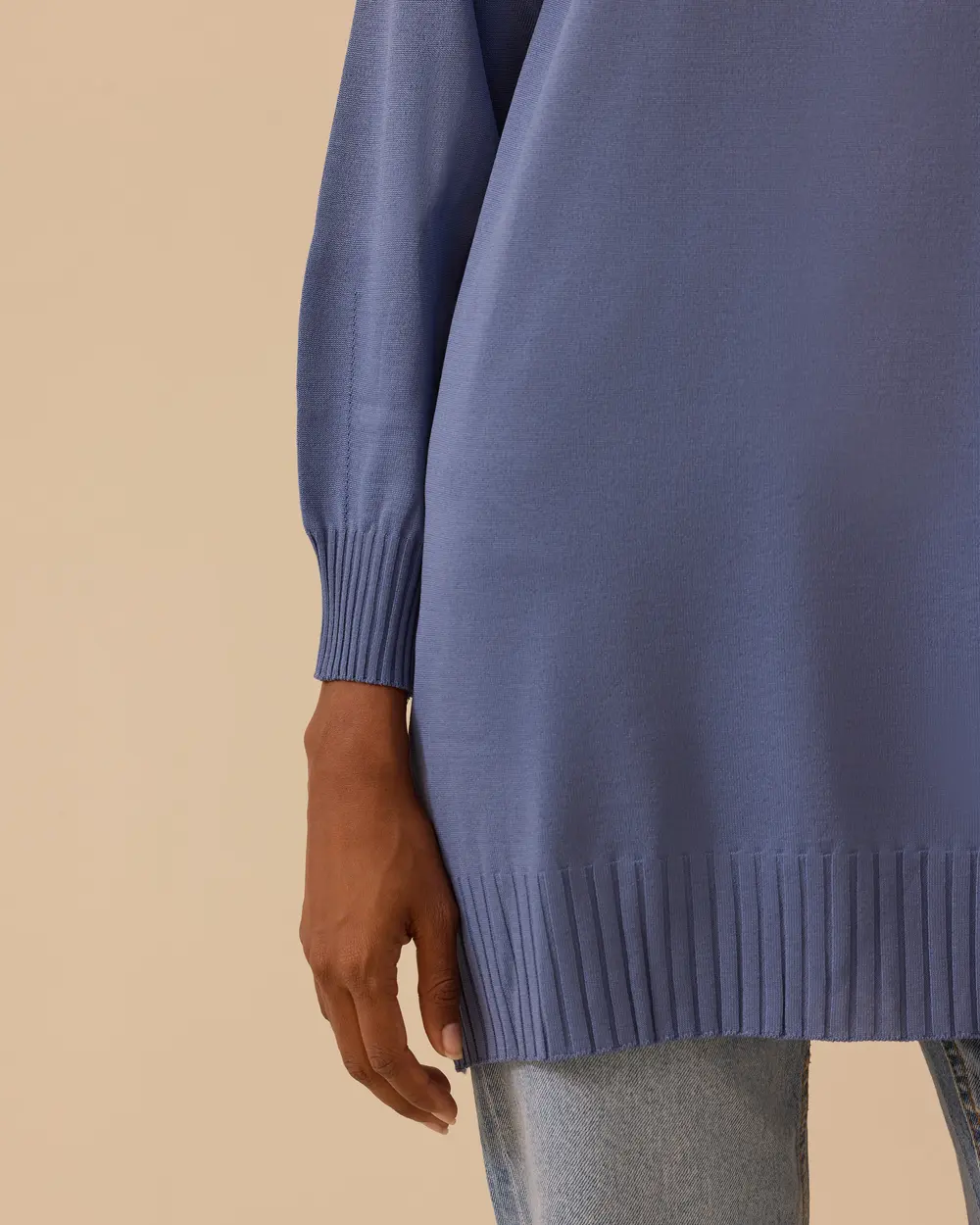 Uzun Kollu Basic Triko Tunik, rahat kalıp, bisiklet yaka ve ribanalı detaylarıyla günlük şıklık sunar.