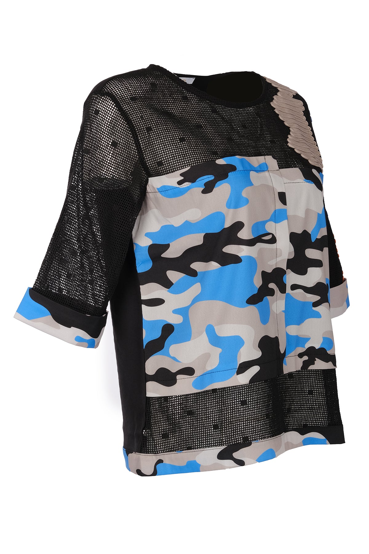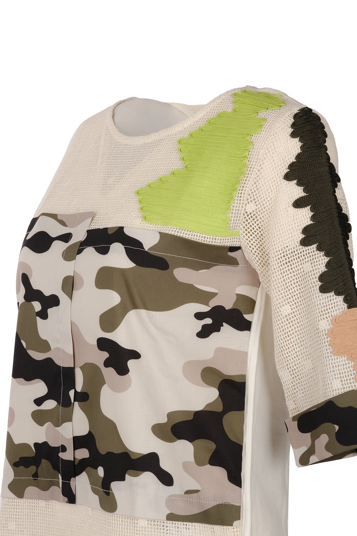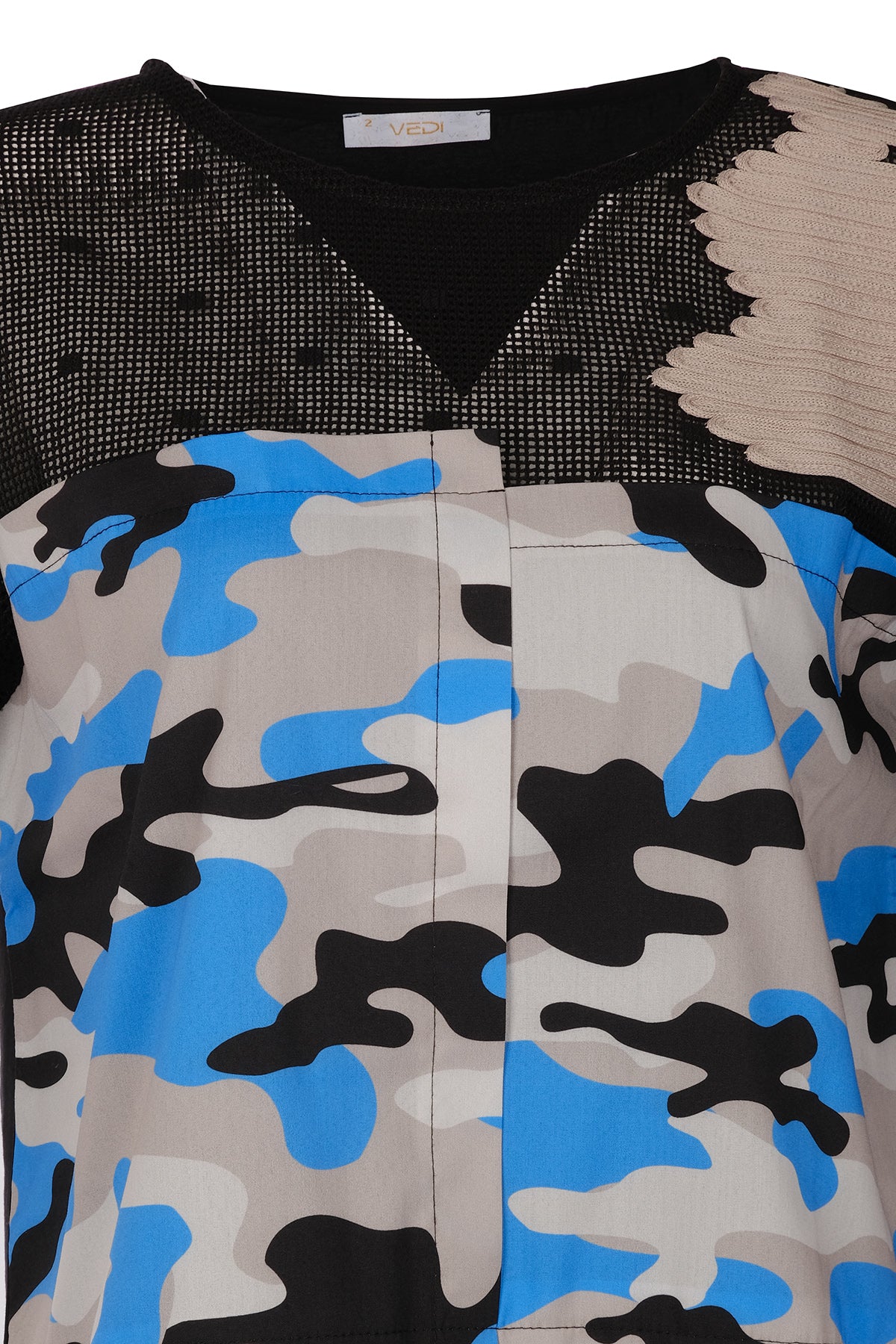 Vedi Minimalist 3/4 Kol Kamuflaj Desen Kadın Bluz - Günlük Şıklık