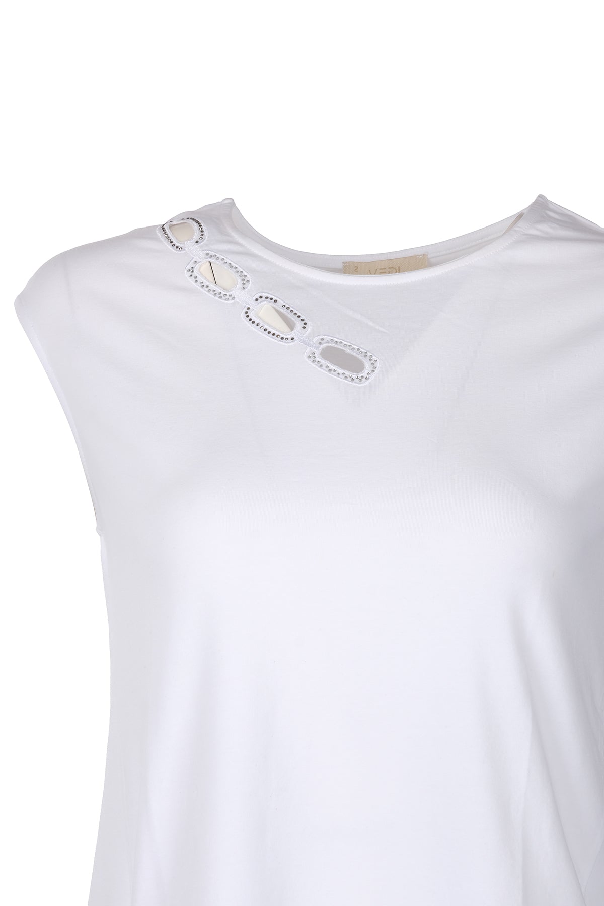 Vedi Minimalist Oversize Kadın Tişört - Taş Detaylı Kısa Kol